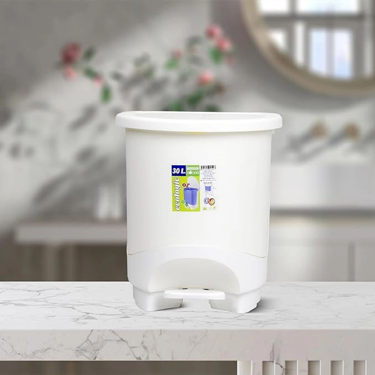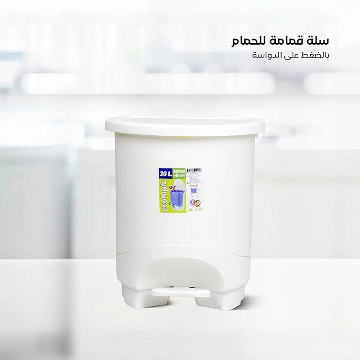 سلة قمامة بدواسة بدواسة عملية تساعد على الاستخدام بدون لمس مباشر. مناسب للبيت أو المكتب وسهل التنظيف.