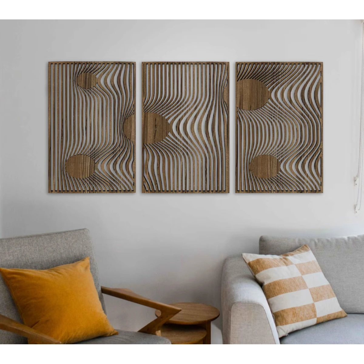- طقم خشبي مكون من 3 ألواح، يوفر لك خيارات متعددة للتنسيق.