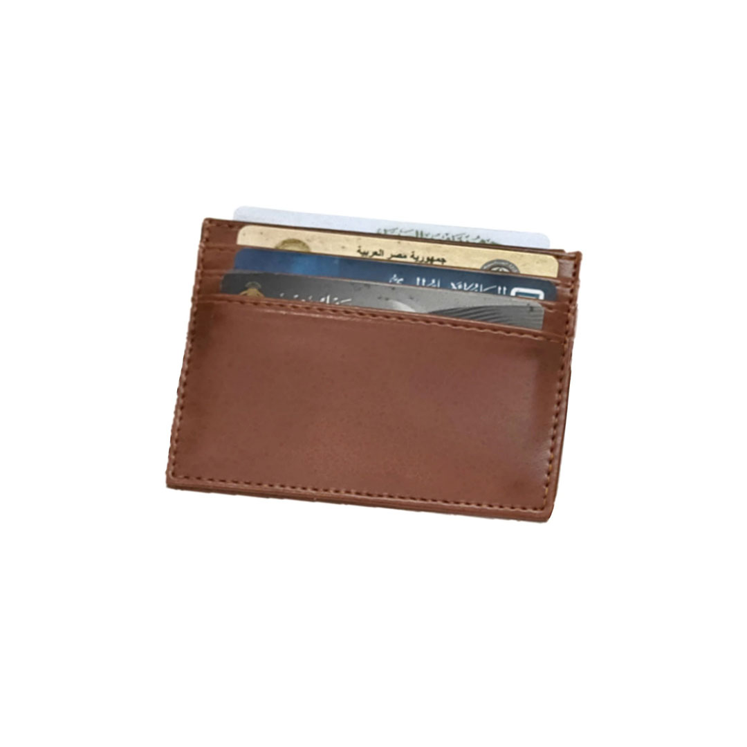 محفظة جلد طبيعي للكروت - بني