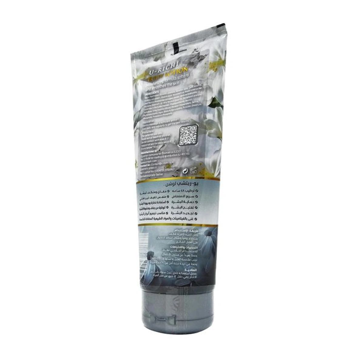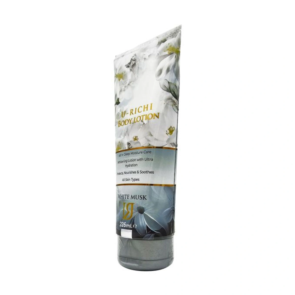 دللي بشرتك بترطيب يدوم 48 ساعة مع لوشن الجسم U-Richi بالمسك الأبيض، يغذي وينعم ويفتح البشرة بتركيبة خفيفة وسريعة الامتصاص. استمتعي ببشرة نضرة وناعمة برائحة المسك الأنيقة طوال اليوم.