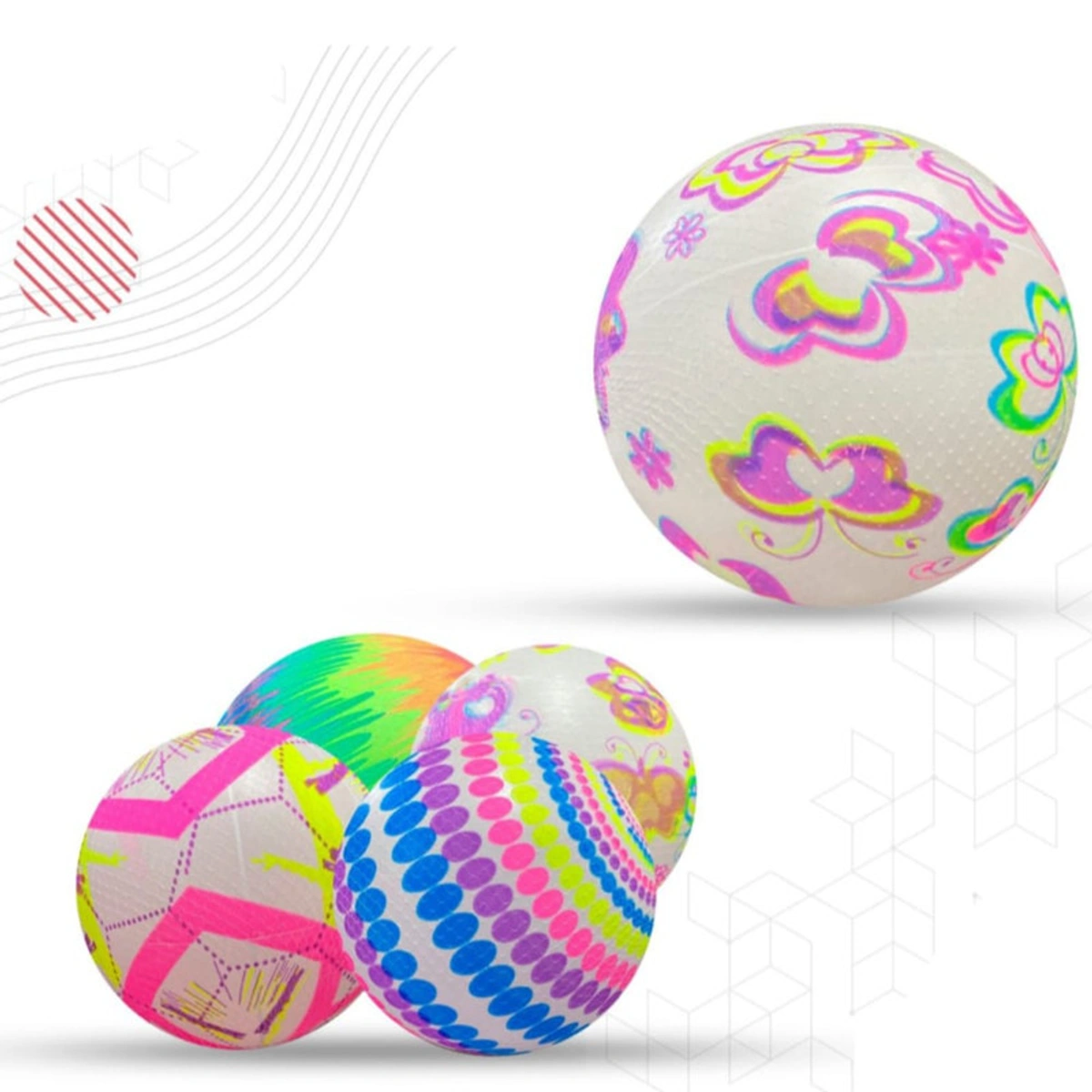 كرة أطفال خفيفة برسومات ملونة وممتعة، مناسبة للعب اليومي وتساعد الأطفال على الاستمتاع بالحركة داخل البيت أو خارجه.