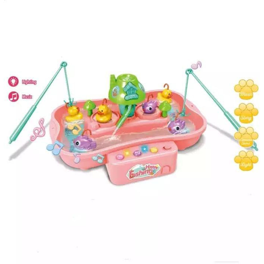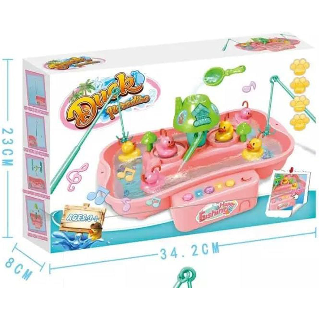 - أسماك وبط تدور وتتحرك في الماء مع الموسيقى.