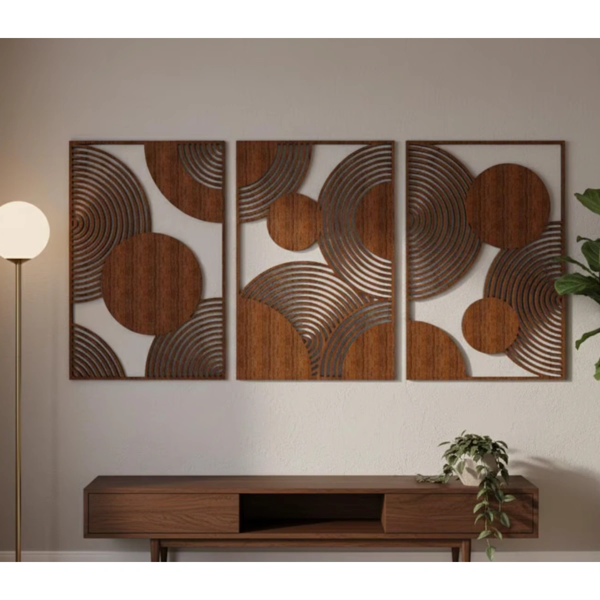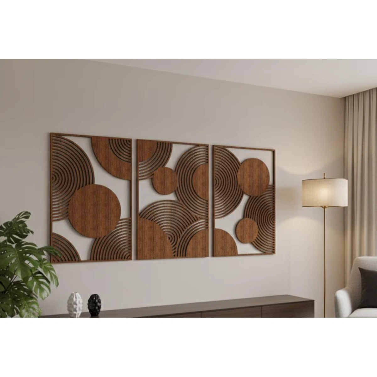جدّد ديكور بيتك بلمسة فنية عصرية! بورتريه ATM الجداري الخشبي الهندسي المكون من 3 قطع هيضيف شياكة وفخامة لأي مكان، بتصميم دقيق وجودة عالية من خشب الـ MDF.