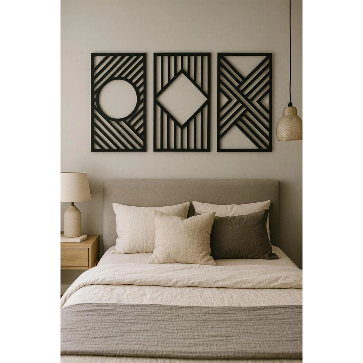 أضف لمسة عصرية وأنيقة لديكور منزلك مع لوحات ATM الجدارية الهندسية المصنوعة من MDF. مجموعة من 3 قطع بتصميمات فريدة ولون أسود جذاب، مثالية لأي مساحة.