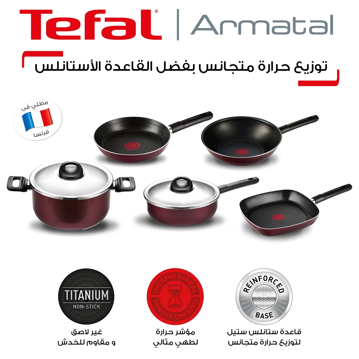 حلة تيفال ارميتال 22 سم باللون الأرجواني توفر تجربة طهي متينة وسهلة الاستخدام. مناسبة لجميع أنواع المواقد، مقاومة للخدش والسقوط، وسهلة التنظيف حتى في غسالة الصحون، لتسهيل تحضير أطباقك اليومية بسرعة وأمان.
