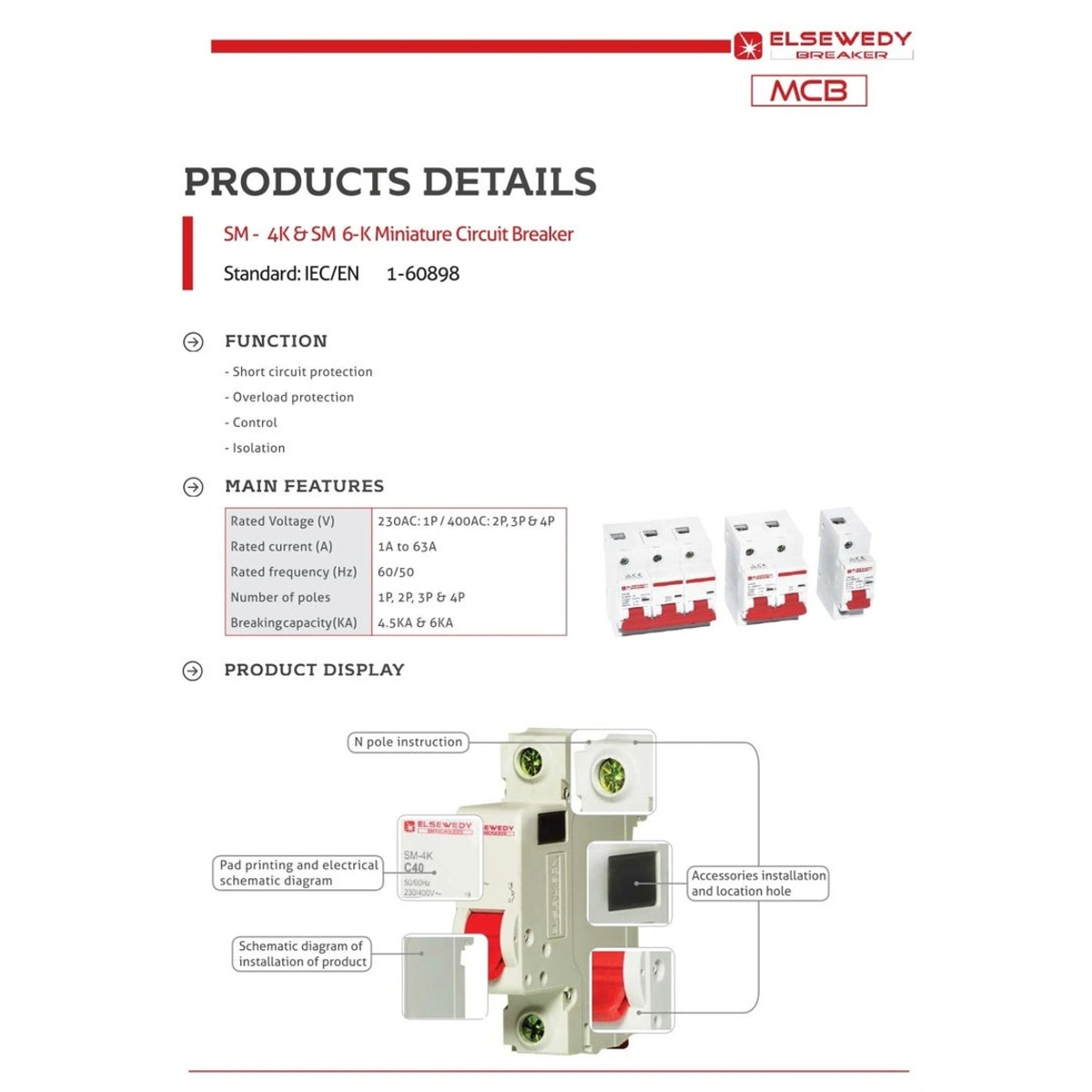 مفتاح أوتوماتيك من السويدي بقدرة 16 أمبير وسعة قطع 6 كيلو أمبير، مصمم لحماية الدوائر الكهربائية في الاستخدام اليومي.