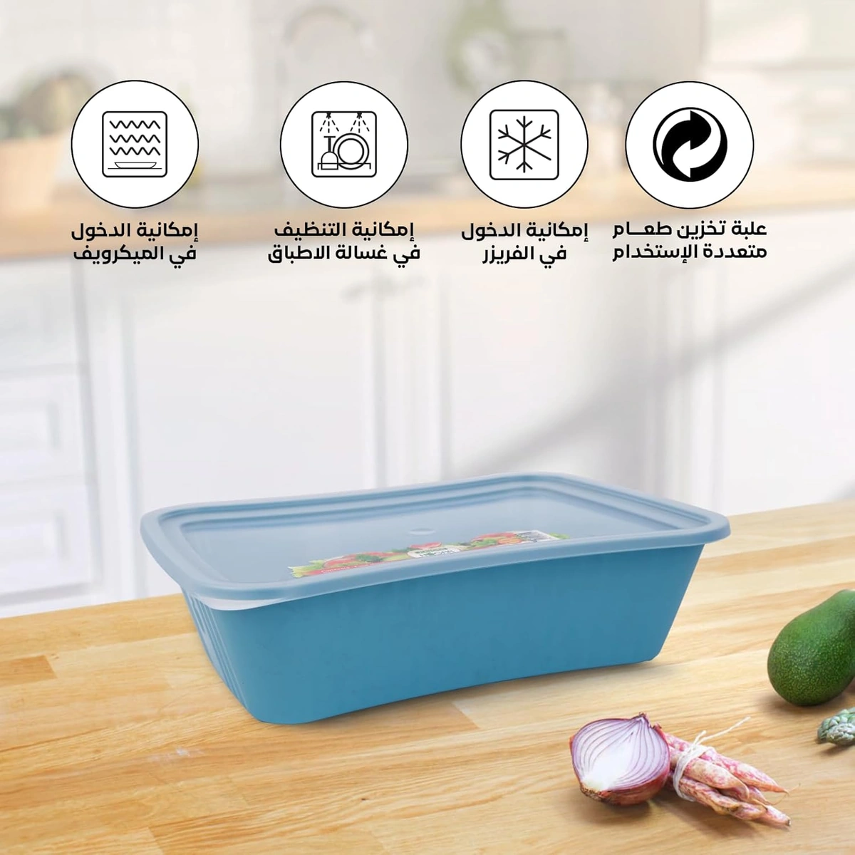 علبة حفظ طعام مربعة بتصميم مربع يوفر مساحة مناسبة للتخزين في الثلاجة أو المطبخ. عملية وسهلة الاستخدام والتنظيف.