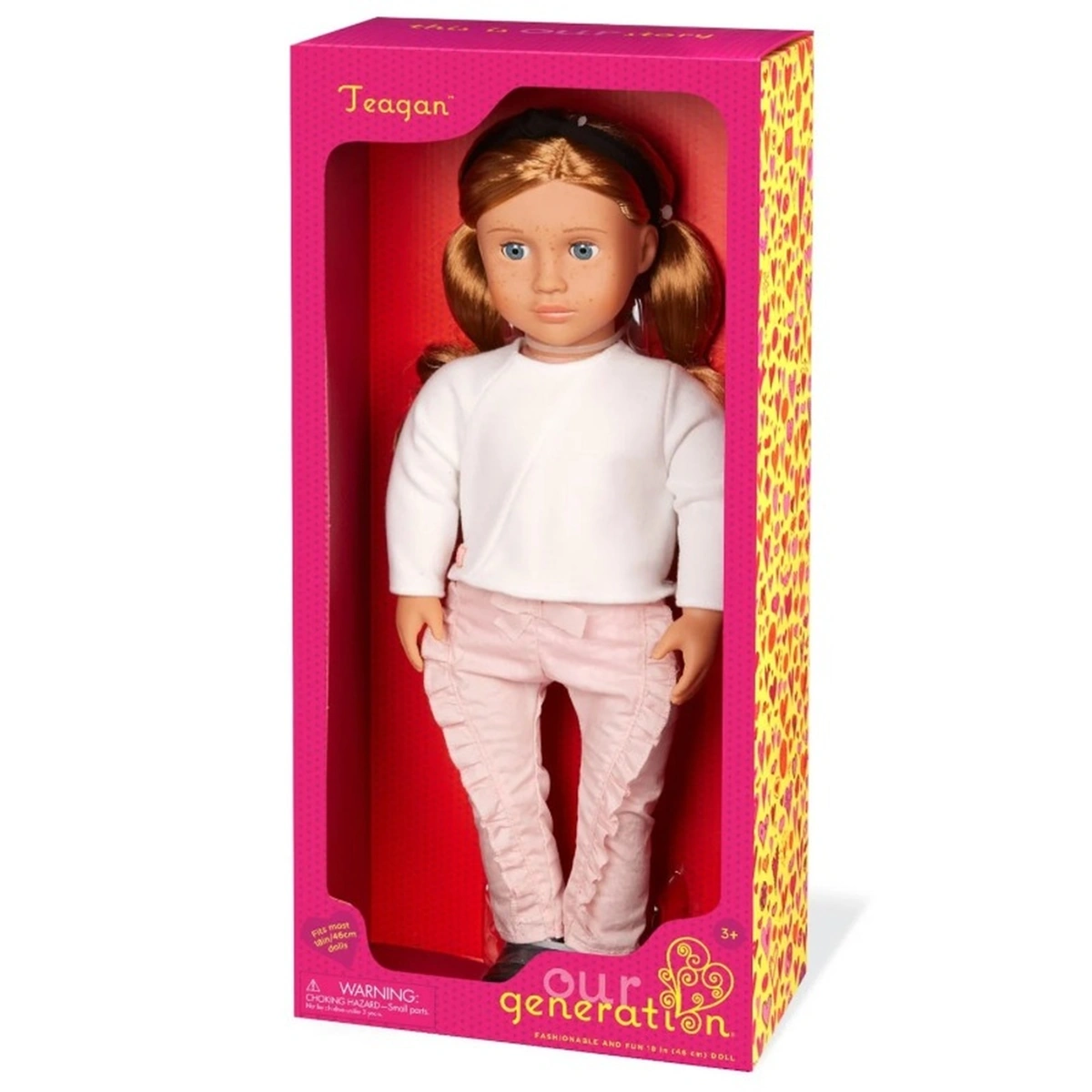 تقدم لكم ماركة "Our Generation" دمية ميرنا الرائعة بحجم 18 بوصة (BD31408)، التي تتميز بمظهر جذاب وملامح طفولية فريدة. تأتي دمية ميرنا بعيون زرقاء لامعة وشعر أحمر مموج، مما يجعلها محط أنظار الأطفال. تصميمها العصري يتضمن قميص كاجوال وبنطال وردي لامع مزين بكشكشة، بالإضافة إلى عصابة رأس تضفي لمسة أنيقة ومميزة. بفضل آلية الإغلاق السهلة، يمكن للأطفال ارتداء وخلع الملابس بشكل سريع وممتع، مما يشجعهم على استكشاف عالم الموضة ورسم إطلالاتهم الخاصة. هذه الدمية مثالية للأطفال من عمر 3 إلى 5 سنوات، مما يجعلها هدية رائعة لهذه الفئة العمرية. والأهم من ذلك، دمية ميرنا تعمل بدون الحاجة إلى بطاريات، مما يوفر تجربة لعب مستمرة وممتعة تحفز خيال الأطفال وتساعدهم على تطوير مهاراتهم الاجتماعية. اجعلوا لحظات اللعب أكثر متعة مع دمية ميرنا الفريدة من Our Generation!