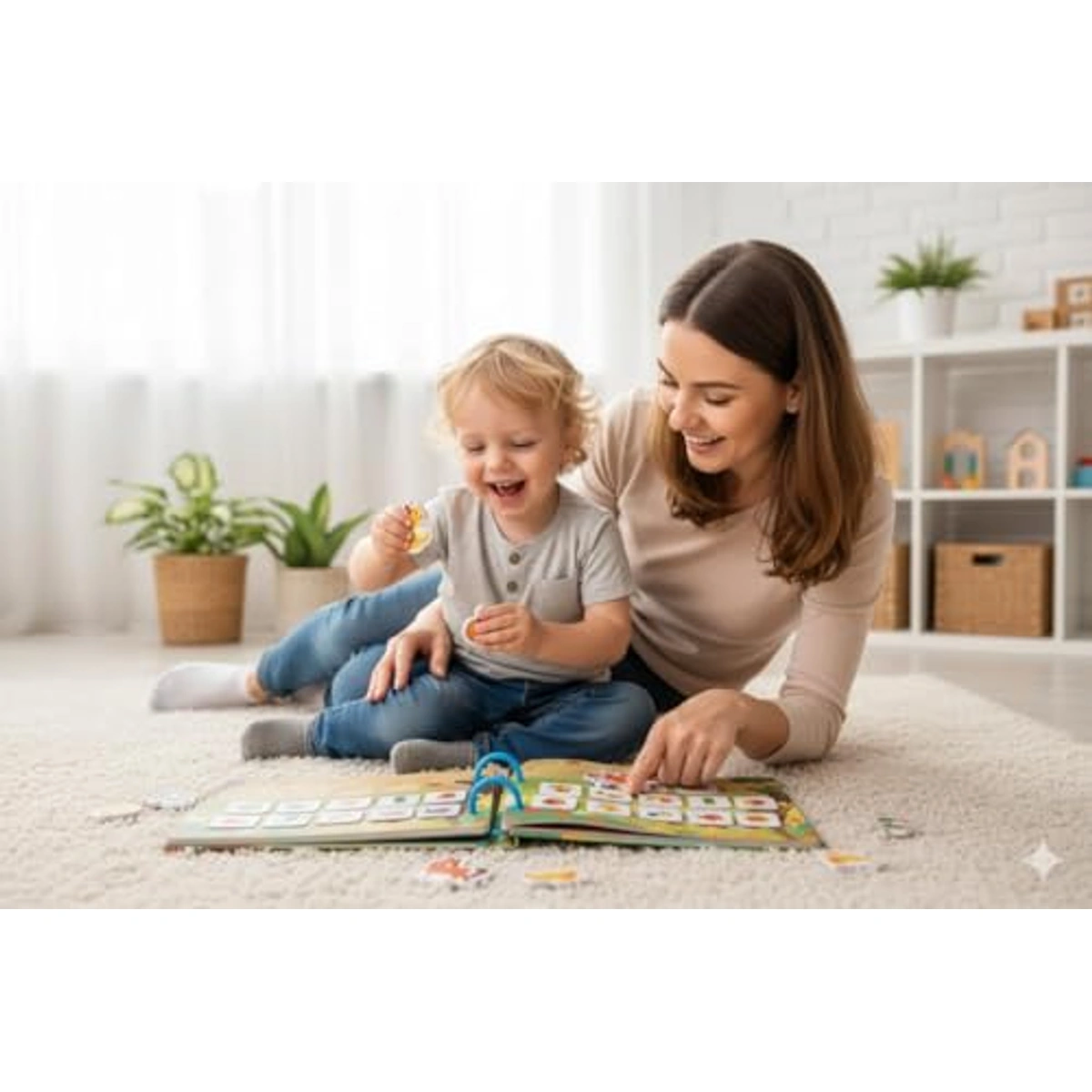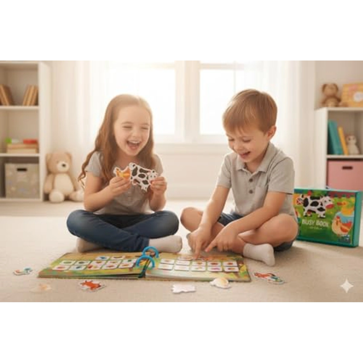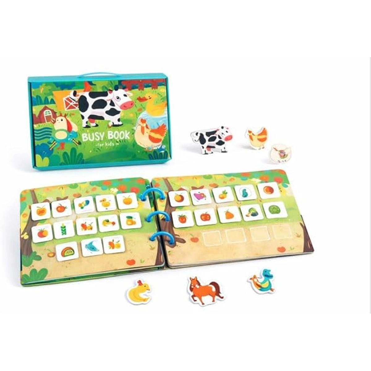 كتاب مشغول التعليمي للأطفال مع ملصقات - مزرعة - أخضر