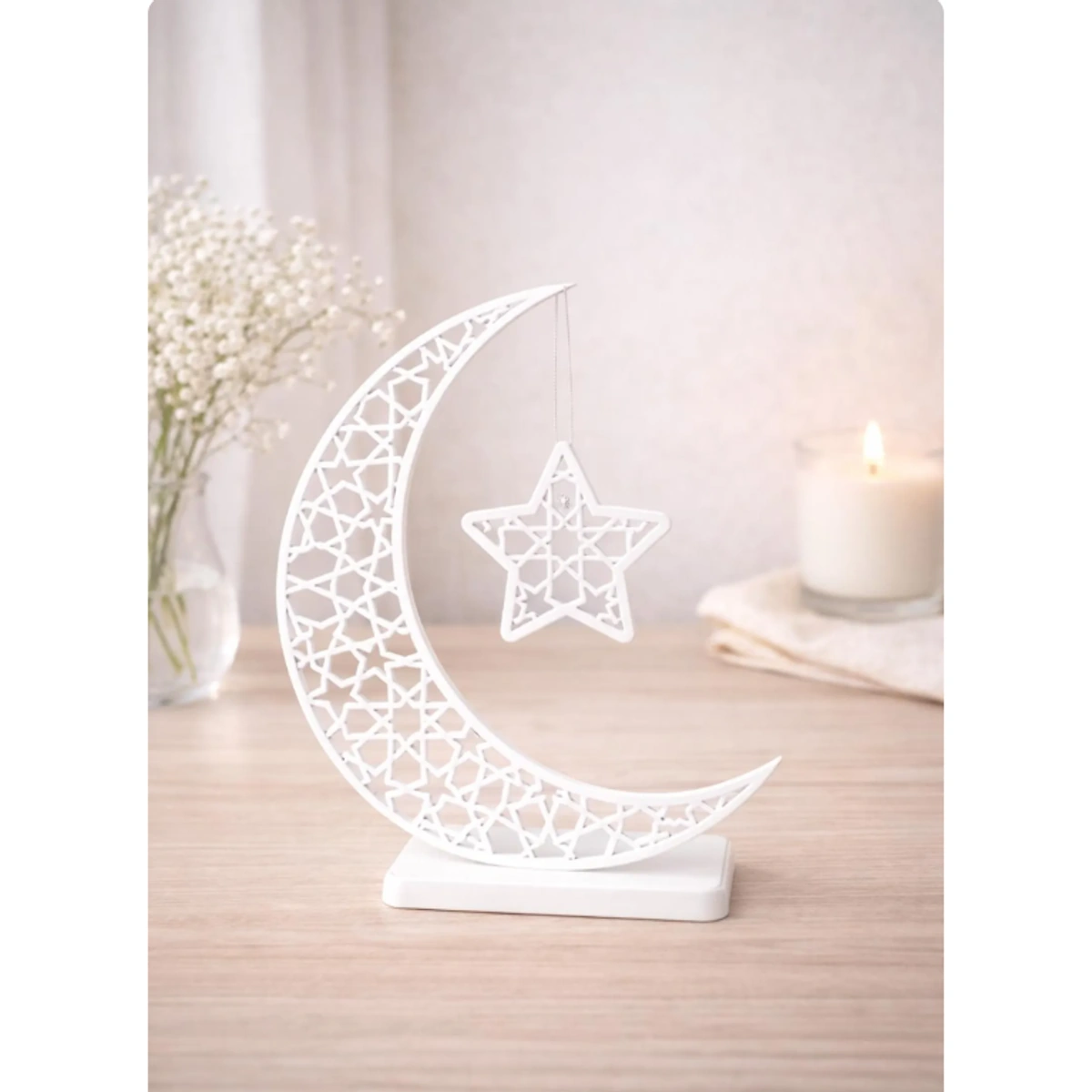 - لمسة إسلامية أنيقة: يضيف تصميم الهلال والنجمة لمسة روحانية وجمالية لمنزلك.