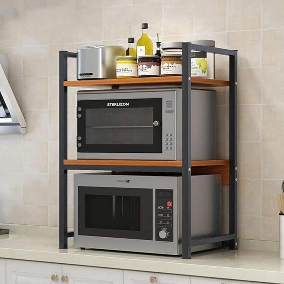 اكتشف رف المطبخ متعدد الاستخدامات المصنوع من المواد عالية الجودة، حيث يجمع بين الإطار المعدني المتين والخشب الأنيق بلونين رائعين: الأسود والبني. يتميز هذا الرف بأبعاده المدمجة 80 × 70 × 45 سم، مما يجعله مثالياً لتنظيم المطبخ والأجهزة بكل سهولة. بفضل تصميمه العصري والعملي، يوفر لك مساحة إضافية لتخزين الأواني والمكونات، مما يساعدك على إبقاء مطبخك مرتباً ومنظماً. صنع بفخر في مصر، يأتي هذا الرف بطبقتين ليعزز كفاءة استخدام المساحة ويضفي لمسة جمالية على أي مطبخ.
