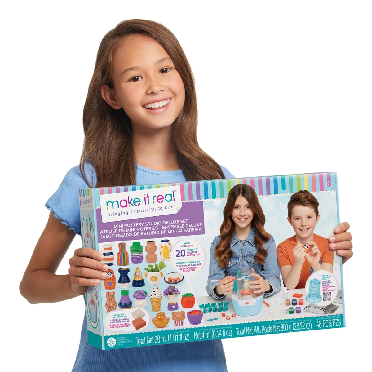 استمتع بتجربة فنية فريدة مع مجموعة عجلة الفخار الصغيرة الفاخرة من الماركة الشهيرة Make It Real (الموديل 1830)، والتي تتضمن 46 قطعة مذهلة تُتيح لك صناعة روائع فخارية في راحة منزلك. الفخار المصغر هو الاتجاه الكبير التالي، حيث يمكنك الآن خلق أعمال مميزة دون الحاجة لدروس باهظة الثمن أو الفوضى، مما يجعلها مثالية لكل من المبتدئين والمحترفين. تأتي المجموعة مع قبة شفافة تحتوي على جميع المواد الأساسية اللازمة لصنع الفخار، مما يسهل عليك الوصول إلى كل ما تحتاجه. مع إمكانية إنشاء 20 مشروعًا باستخدام الطين الطبيعي المجفف بالهواء، يستمتع المستخدمون بمساعدة دليل التشكيل المبتكر الذي يضمن نتائج مذهلة من البداية. بالإضافة إلى ذلك، توفر المجموعة أدوات ثقب وقطع الطين، ألوان طلاء وطين إضافي، مع سلك طاقة USB لسهولة الاستخدام في أي مكان. هذه المجموعة ليست فقط موجهة للأطفال من 8 إلى 14 عامًا، بل هي أيضًا فرصة رائعة للبالغين للاستمتاع بوقت إبداعي مدهش مع العائلة والأصدقاء. اجعل الفخار هواية ممتعة ومفيدة لك ولعائلتك!