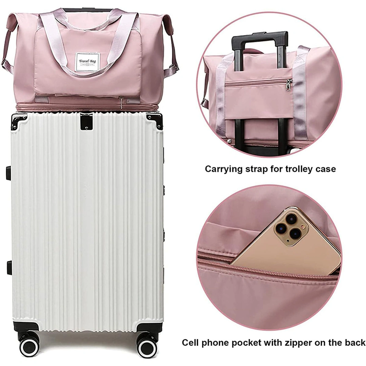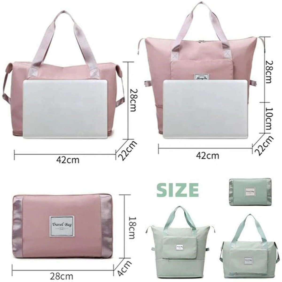 - حقيبة يد: يمكن استخدامها كحقيبة يد مع حزام لتثبيتها على عربة التسوق، مثالية لعطلة نهاية الأسبوع أو الرحلات القصيرة.