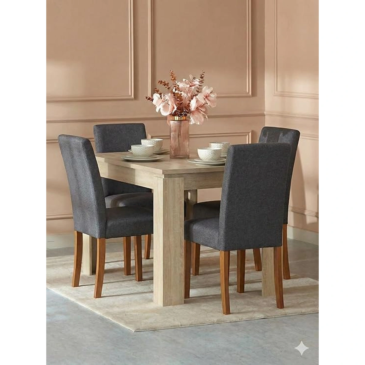 ارتقِ بديكور منزلك مع طقم طاولة الطعام من Home Art، المصنوعة من خشب MDF المتين و4 كراسي كتان مريحة. تصميم عصري وأنيق يجمع بين الجودة والراحة، مثالي للمساحات العائلية الصغيرة والكبيرة.