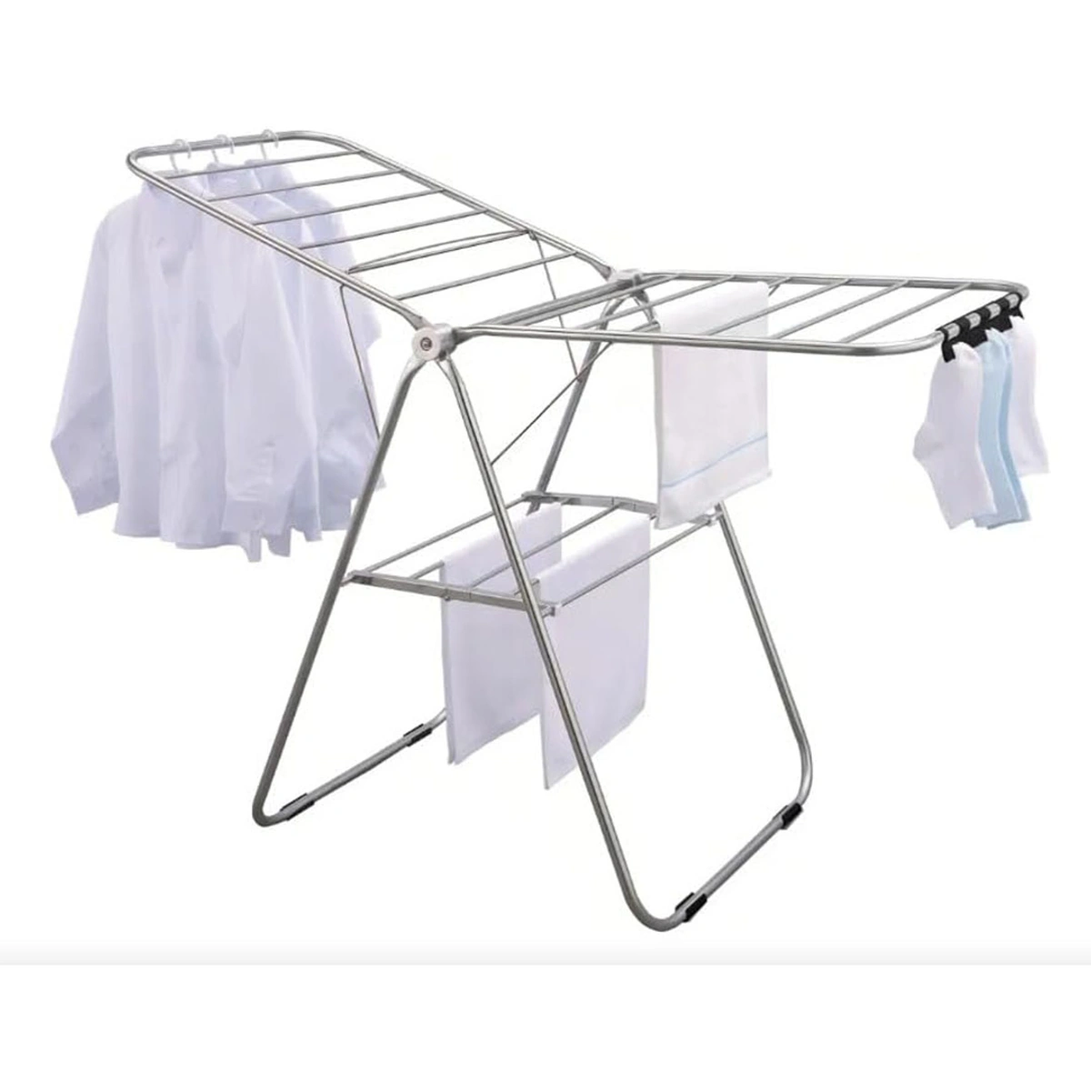 منشر الغسيل القابل للطي بطول 150 سم تصميمه بسيط وعملي وينفع في كل الأماكن، سواء جوه البيت أو في البلكونة أو حتى برا في الجنينه لأنه مصنوع بخامات خفيفة وسهل تتعامل معاه من غير ما ياخد مساحة كبيرة. تقدر تطويه وتخزنه في أي ركن بسهولة، وكمان سهل تنقله من مكان لمكان لأنه خفيف الوزن ومش مرهق، واللون فضي شيك ومناسب لأي ديكور، فبيخلي تجفيف الغسيل أسرع وأسهل في كل الظروف.