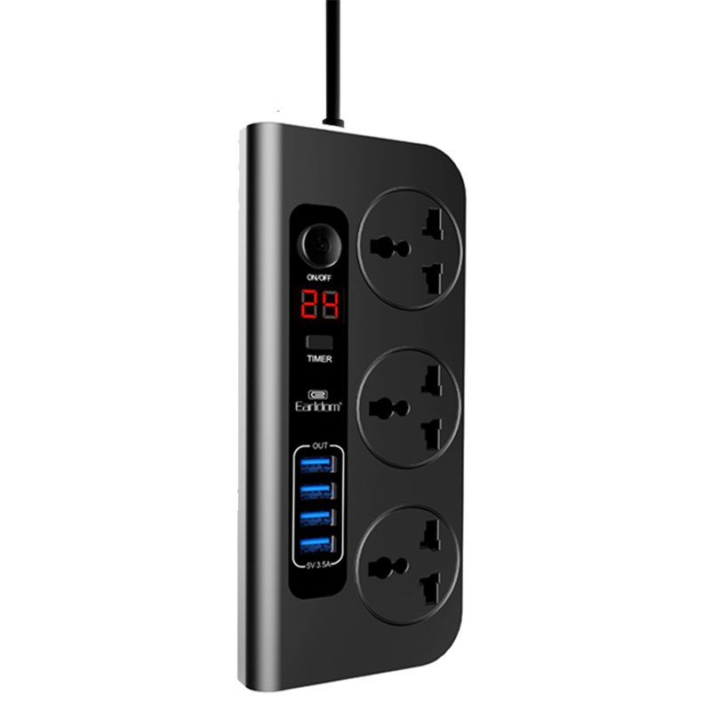 Earldom مشترك 3 مقبس طافه - 4 USB - أسود