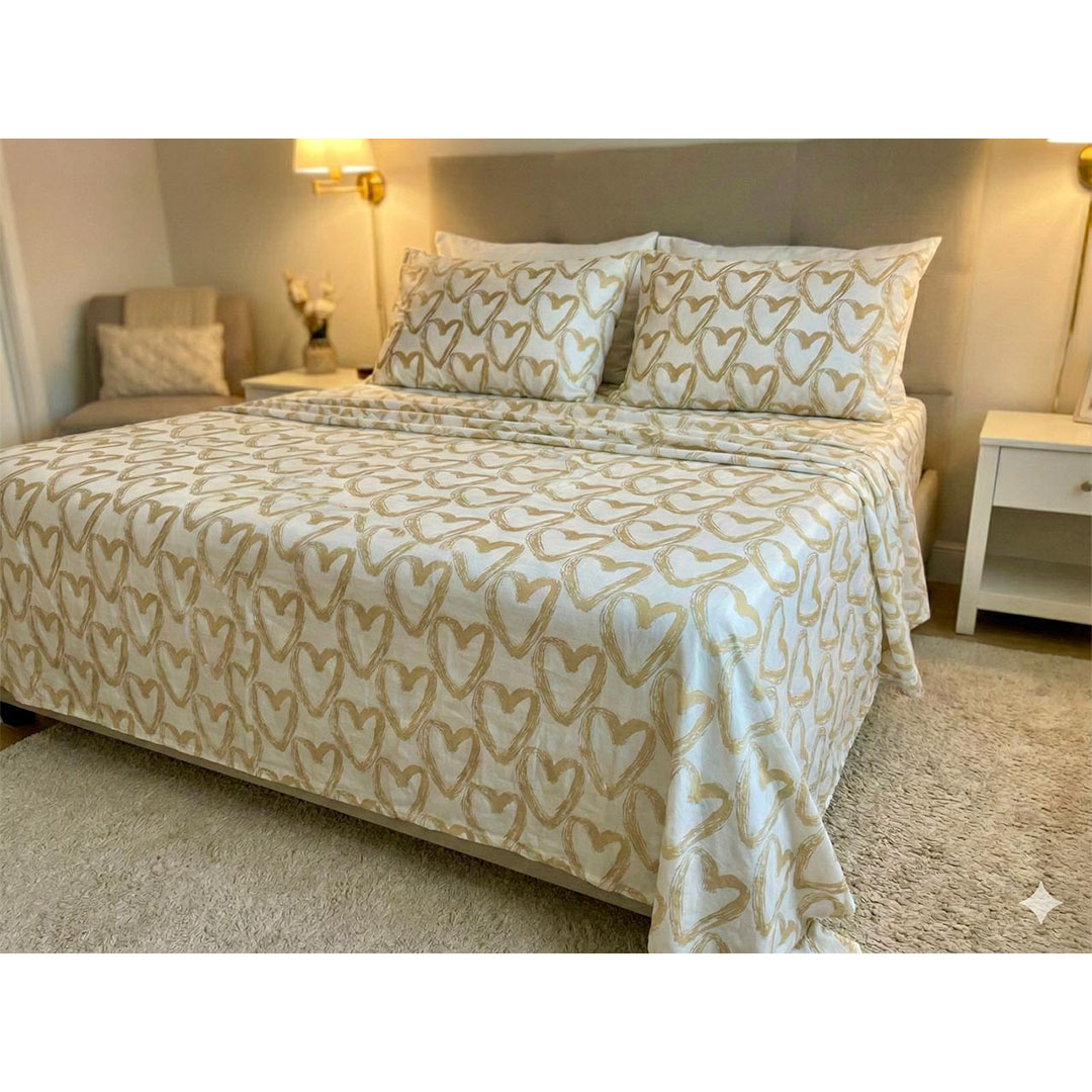 يارلن طقم ملاية عادية + 2 كيس مخدة صغيرة - قلب دهبي كبي...