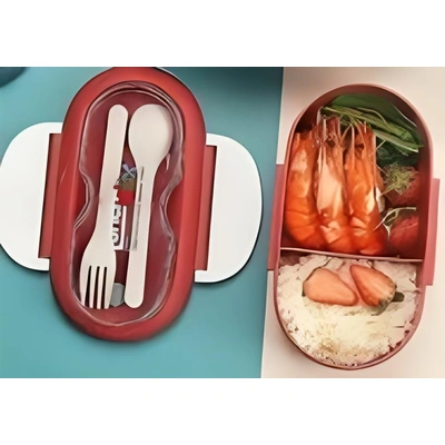 لانش بوكس ولادي وبناتي - قسمين مع ملعقة وشوكة -صندوق غذاء مانعه للتسرب - احمر في ابيض