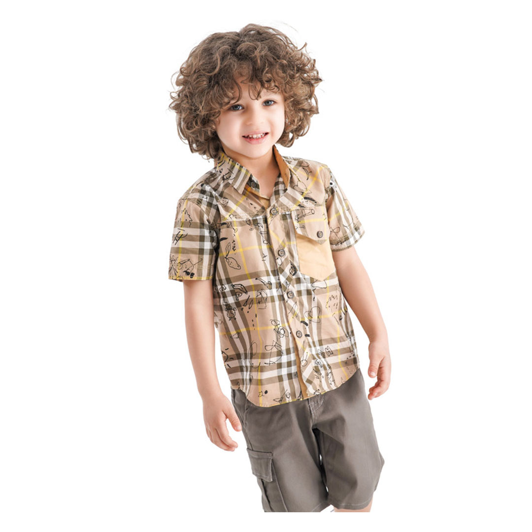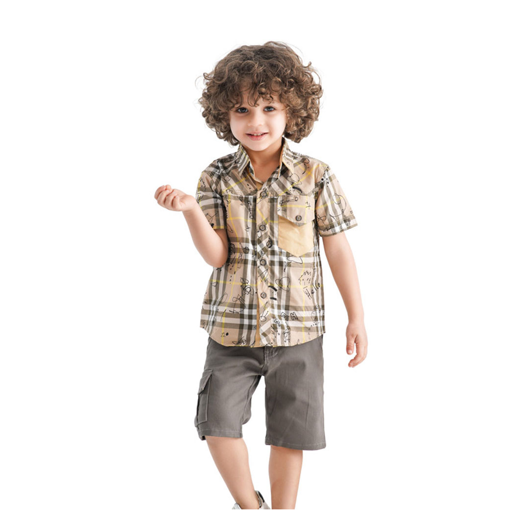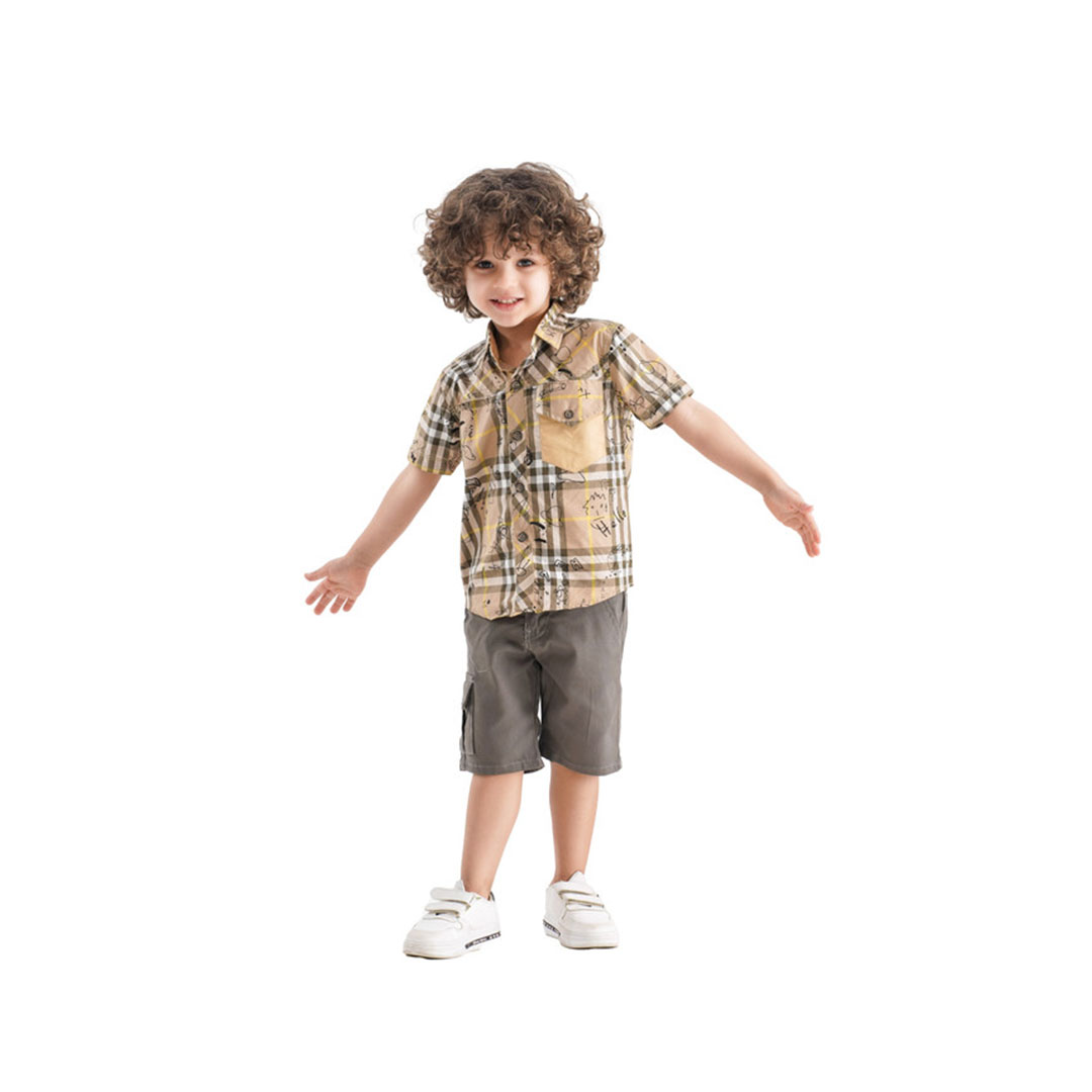 • طقم أولادي قميص و شورت - بني/بيج - MA-MU-912