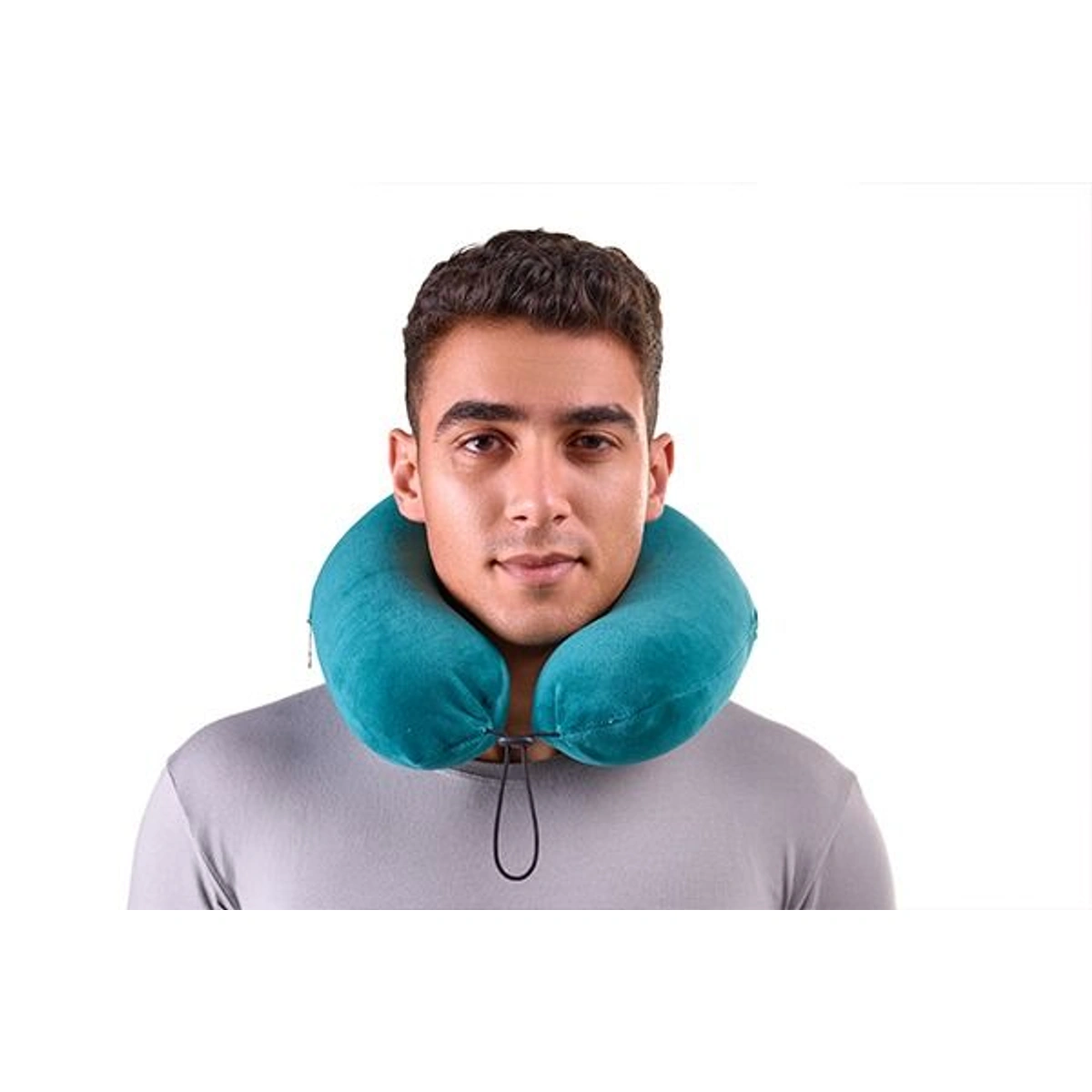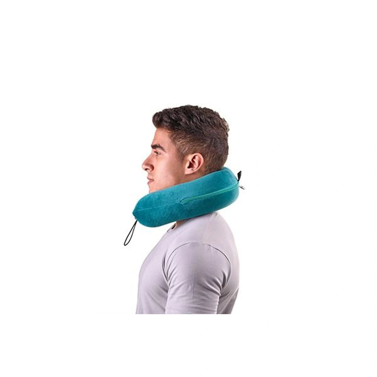- قم بوضع فتحه الوسادة حول رقبتك، تحت أذنيك وفوق الكتفين، لدعم الرأس والسماح بانحناء الرقبة الصحيح.
