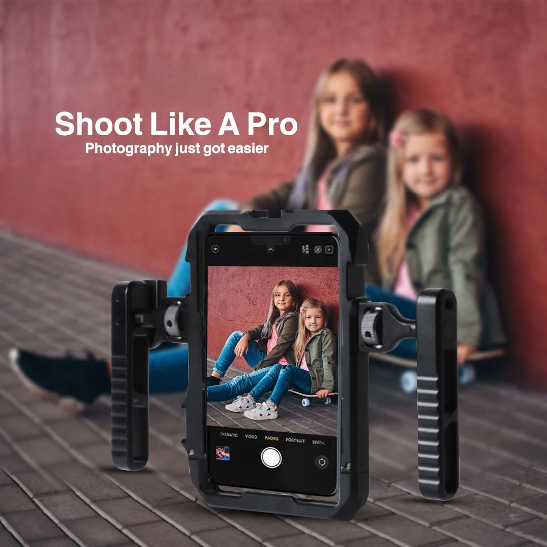 حامل موبايل للتصوير بتصميم احترافي وثبات عالي، مصنوع من سبائك ألومنيوم قوية. بيدعم التصوير الأفقي والرأسي، ومناسب للتدوين المرئي وتصوير الفيديو والصور بجودة أفضل وثبات أعلى.