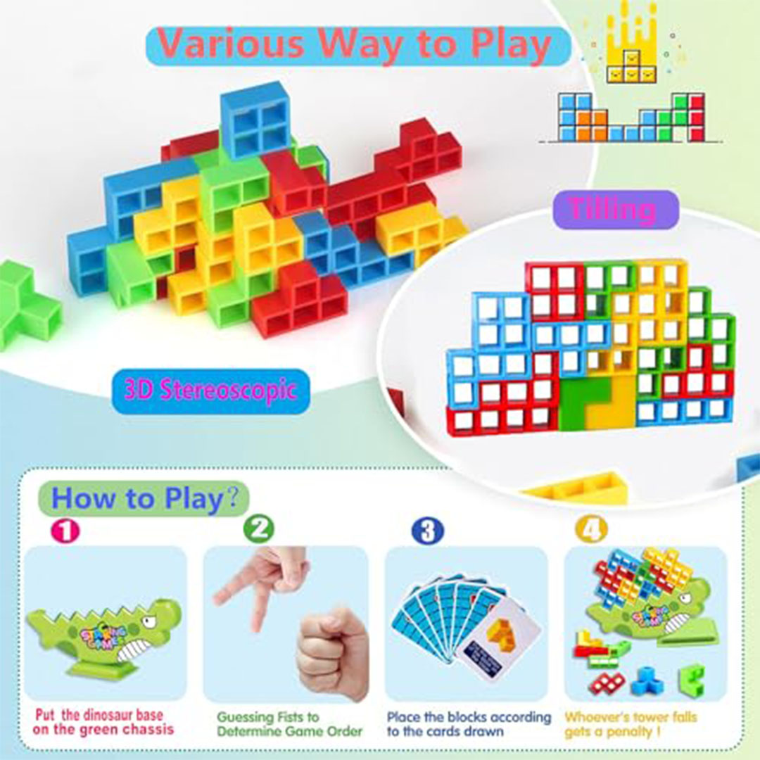 مميزات ومواصفات لعبة تكديس مكعبات التوازن تيتريس تاور - 48 قطعة