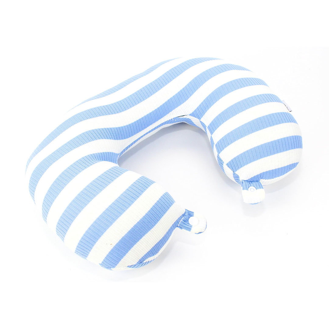 وسادة رقبة قابلة للنفخ ببطانة ناعمة مع حقيبة - أزرق