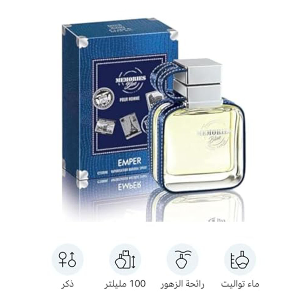 مميزات ومواصفات عطر إمبر ميموريز بلو للرجال - 100 مل - أو دو تواليت