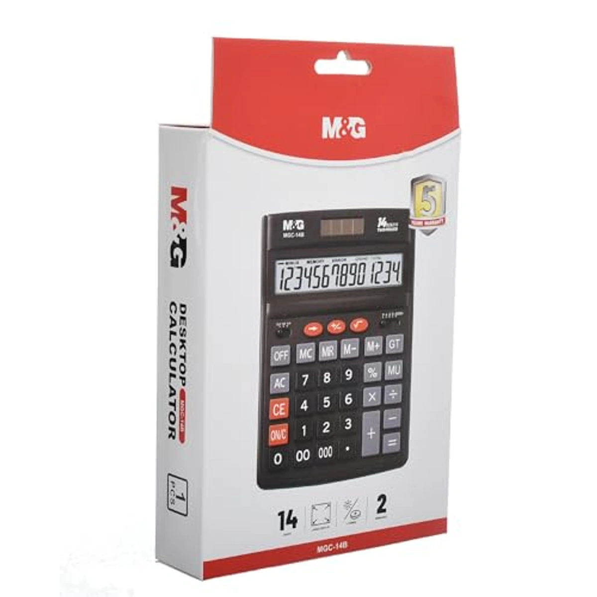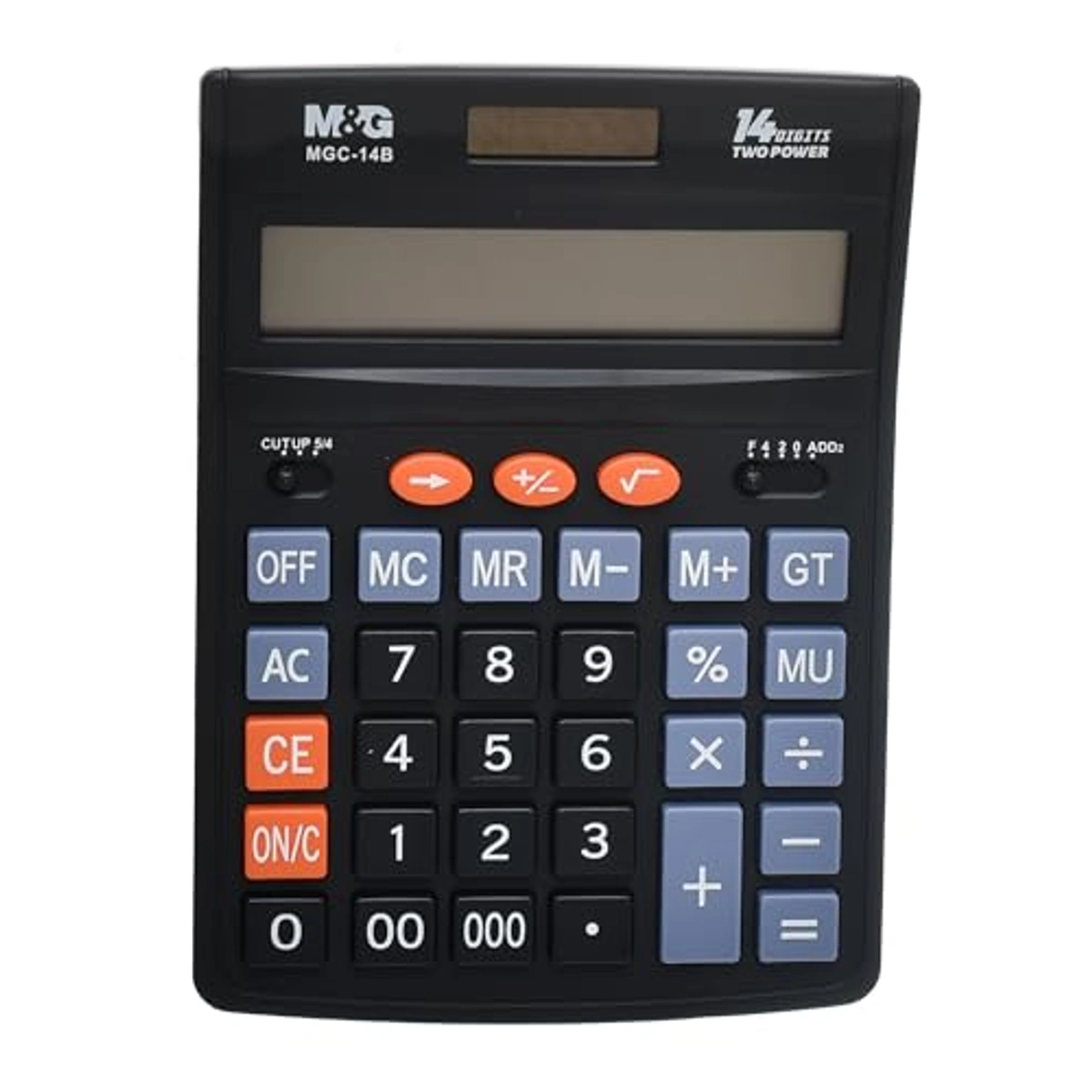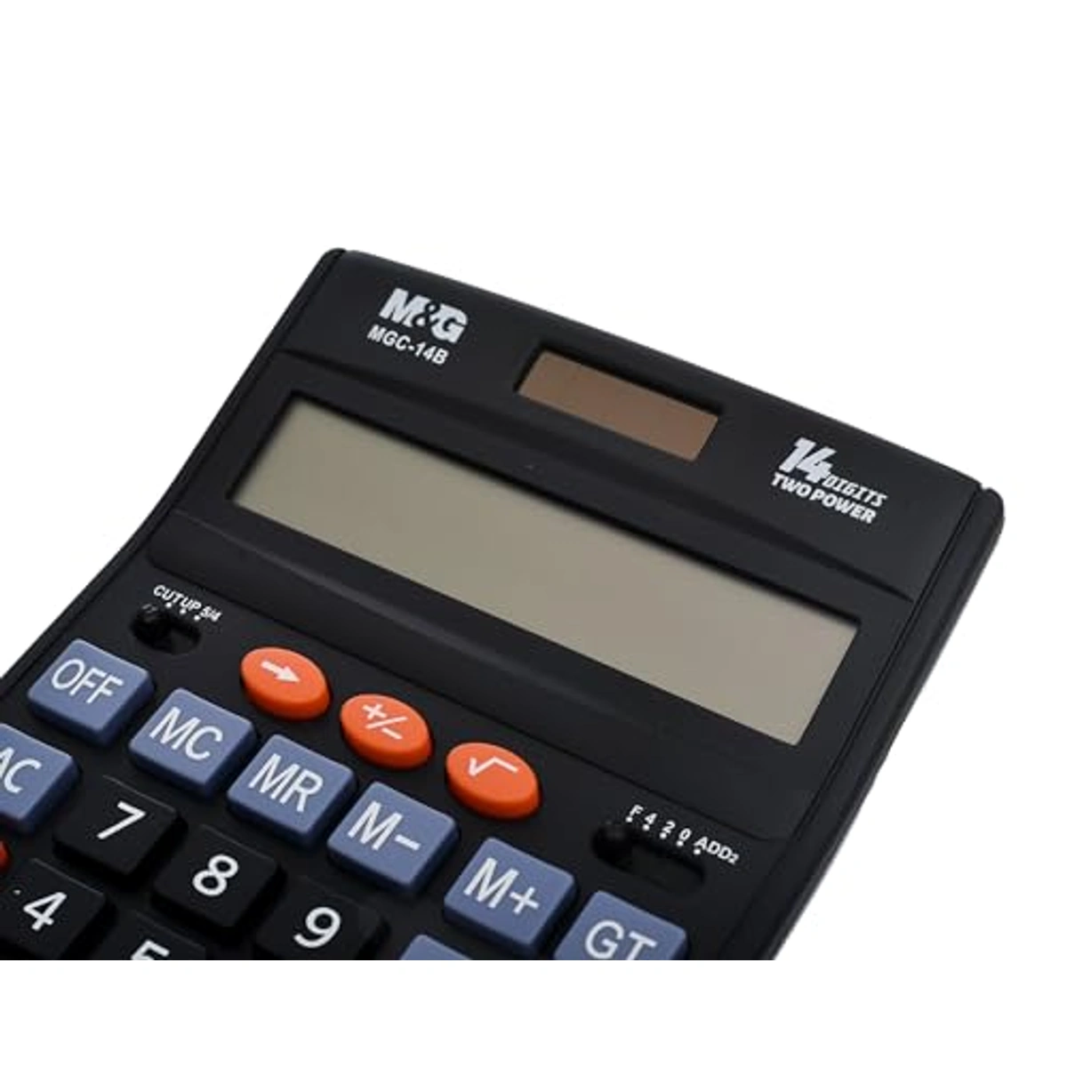 ام اند جي آلة حاسبة شفافة بشاشة كبيرة 14 رقم - طاقة مزدوجة