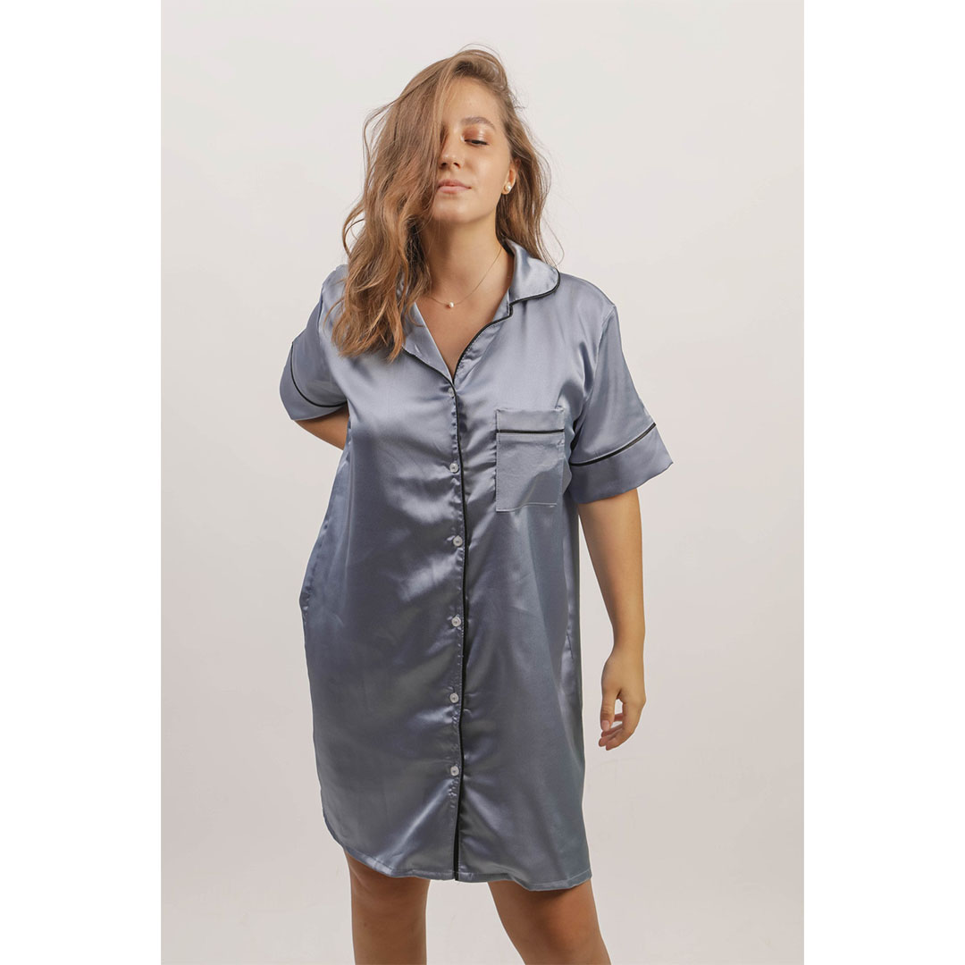 فستان ستان قصير حريمي - كحلي