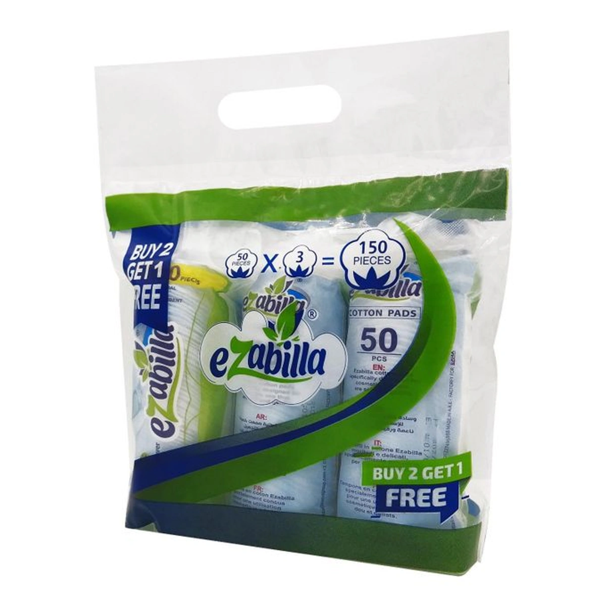 - المحتوى: عبوة ترويجية تحتوي على 3 قطع، كل قطعة بها 50 كبسولة قطنية (إجمالي 150 كبسولة)