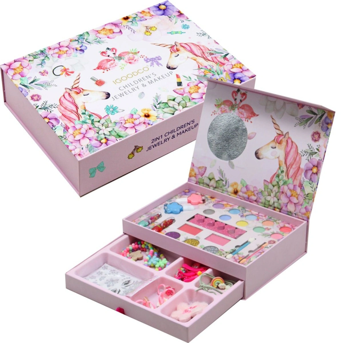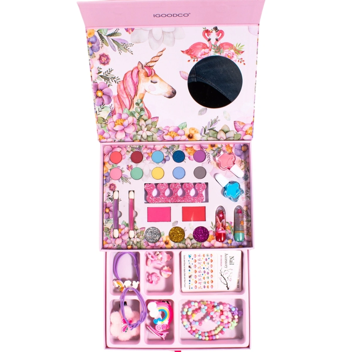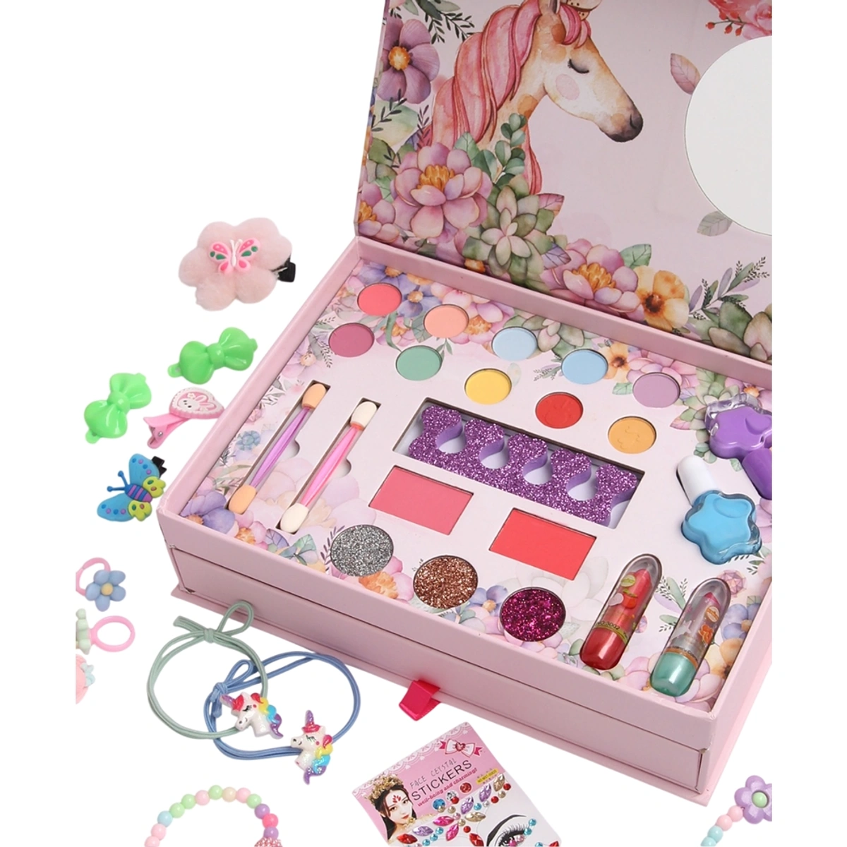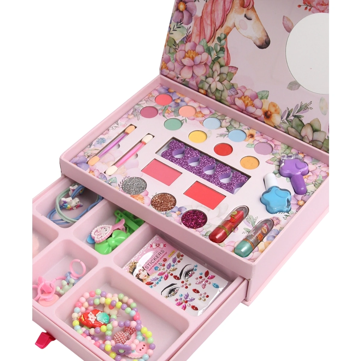 استعدي لاكتشاف مجموعة إبداعية من المجوهرات ومستحضرات التجميل للأطفال، المنتجة خصيصًا للبنات من سن 3 إلى 5 سنوات - IG2925. تتميز هذه المجموعة بأنها سهلة الاستخدام وآمنة تمامًا، حيث لا تحتاج إلى بطاريات، مما يجعلها مثالية للعب الإبداعي. تحتوي العلبة على قسمين: الأول يتضمن مستحضرات تجميل متنوعة مثل ظلال العيون، وأحمر الخدود، ولمعان الشفاه، وطلاء الأظافر مع فاصل الأصابع وأداة لوضع ظلال العيون، مما يتيح للفتيات تجربة وضع مكياج كامل بطريقة ممتعة. أما القسم الثاني، فيضم مجموعة من الإكسسوارات الرائعة مثل ورقة بأحجار الراين، خواتم، أربطة شعر، دبابيس شعر، وخرز، لتساعد الفتيات على إضفاء لمسة جمالية على إطلالتهن. مع هذه المجموعة، ستحظى كل فتاة بتجربة إبداعية فريدة تساهم في تعزيز مهاراتها الفنية، واكتشاف أسلوبها الخاص في التجميل وتصفيف الشعر. اجعلي لحظات اللعب مليئة بالإبداع والمتعة مع مجموعة IG2925!