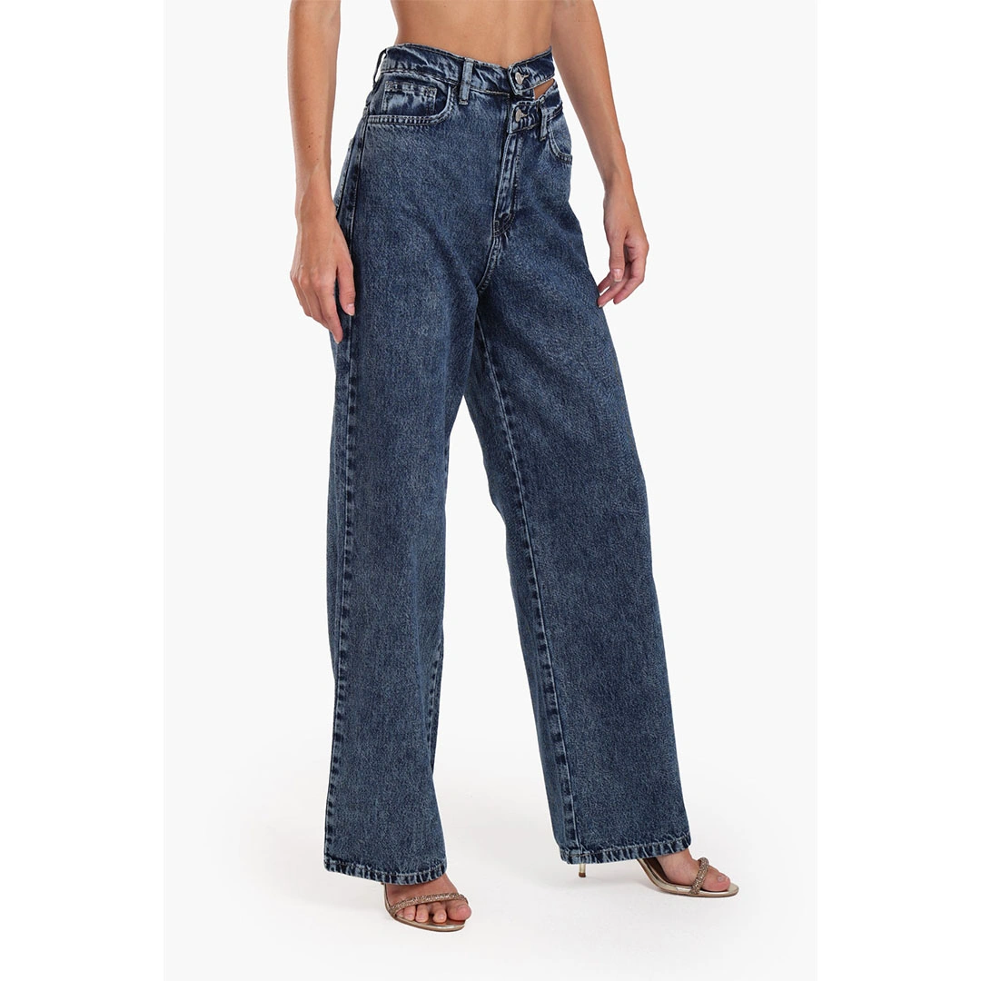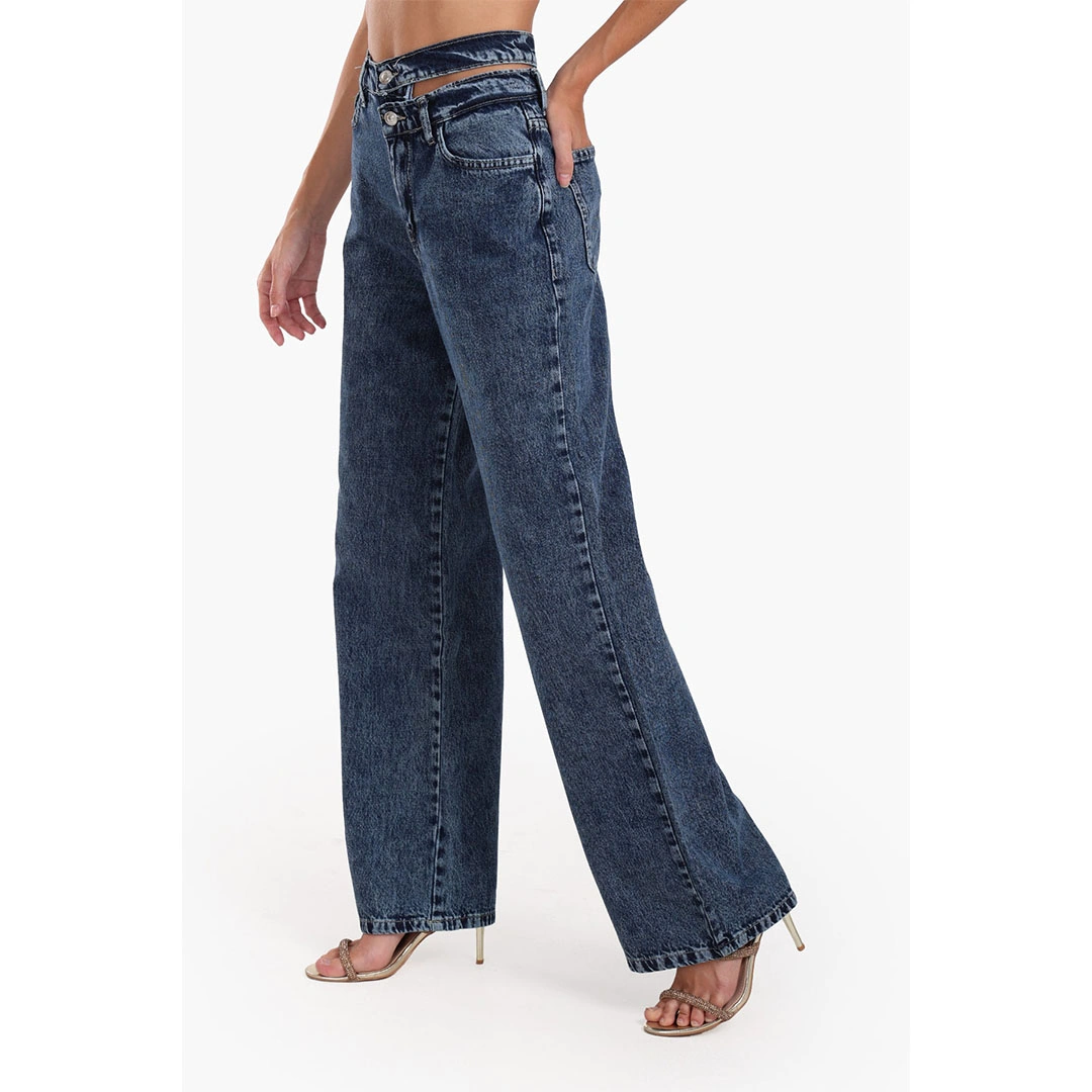 اجذبي الأنظار مع بنطال الجينز الواسع ذو الخصر المقطوع، المصنوع من قماش القطن المتين. يتميز هذا البنطال بنمط غسيل متوسط حديث وتصميم خصر مبتكر، مما يضفي لمسة عصرية على شكل تقليدي. يضمن الخصر العالي مع إغلاق بأزرار مزدوجة وسحاب تناسبًا آمنًا، بينما يوفر قصّ الساق الواسع شكلًا مريحًا ومناسبًا. يضيف التصميم التقليدي مع خمس جيوب عملية لمسة من الفائدة، بينما يكمل الحافة المستقيمة بطول كامل هذا المظهر العصري. يمكنكِ تنسيق البنطال مع توب قصير ضيق وحذاء رياضي عالٍ للحصول على إطلالة حضرية أنيقة، أو مع بلوزة مدخولة وكعب عريض لمظهر أكثر رسمية، أو إضافة تي شيرت مزخرف وجاكيت جلدي للحصول على لمسة من أسلوب الشارع، أو الحفاظ على مظهر غير رسمي مع توب بدون أكمام وحذاء مسطح لارتداء مريح خلال عطلة نهاية الأسبوع.