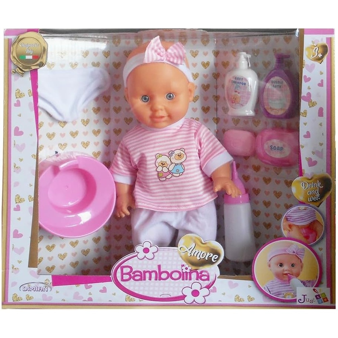 تقدم لكم الدمية بامبولينا المتبولة مع الأكسسوارات - BD1821، الخيار المثالي للبنات من عمر 4 سنوات وما فوق، حيث تأتي بلون بينك جذاب يضمن جذب انتباه الأطفال. تعتبر هذه الدمية تفاعلية بفضل ميزاتها الفريدة، فهي تتفاعل مع المستخدم بطريقة ممتعة، حيث يمكن لطفلتك إطعامها بالزجاجة لتشرب حليبها، كما يمكنها وضعها في النونية لتتعلم عادات الإنسان ولتتبول بشكل واقعي. تأتي الدمية مع مجموعة مميزة من الأكسسوارات التي تشمل زجاجة، نونية، حفاضات، شامبو، جل استحمام، وصابون، مما يتيح لطفلتك الاستمتاع بتجربة اللعب وتعلم الرعاية. لا تفوتي فرصة تعزيز خيال طفلتك وتقديم تجربة مميزة من اللعب التعليمي مع الدمية بامبولينا!