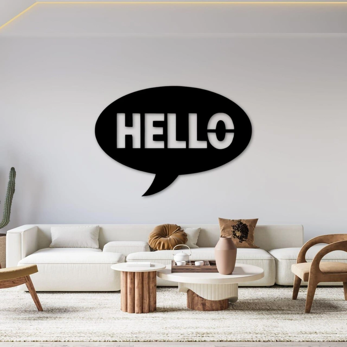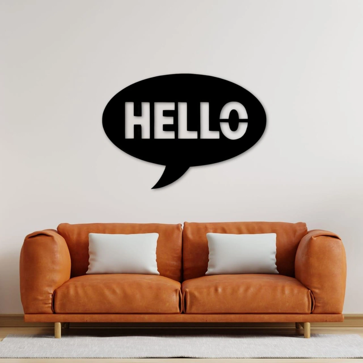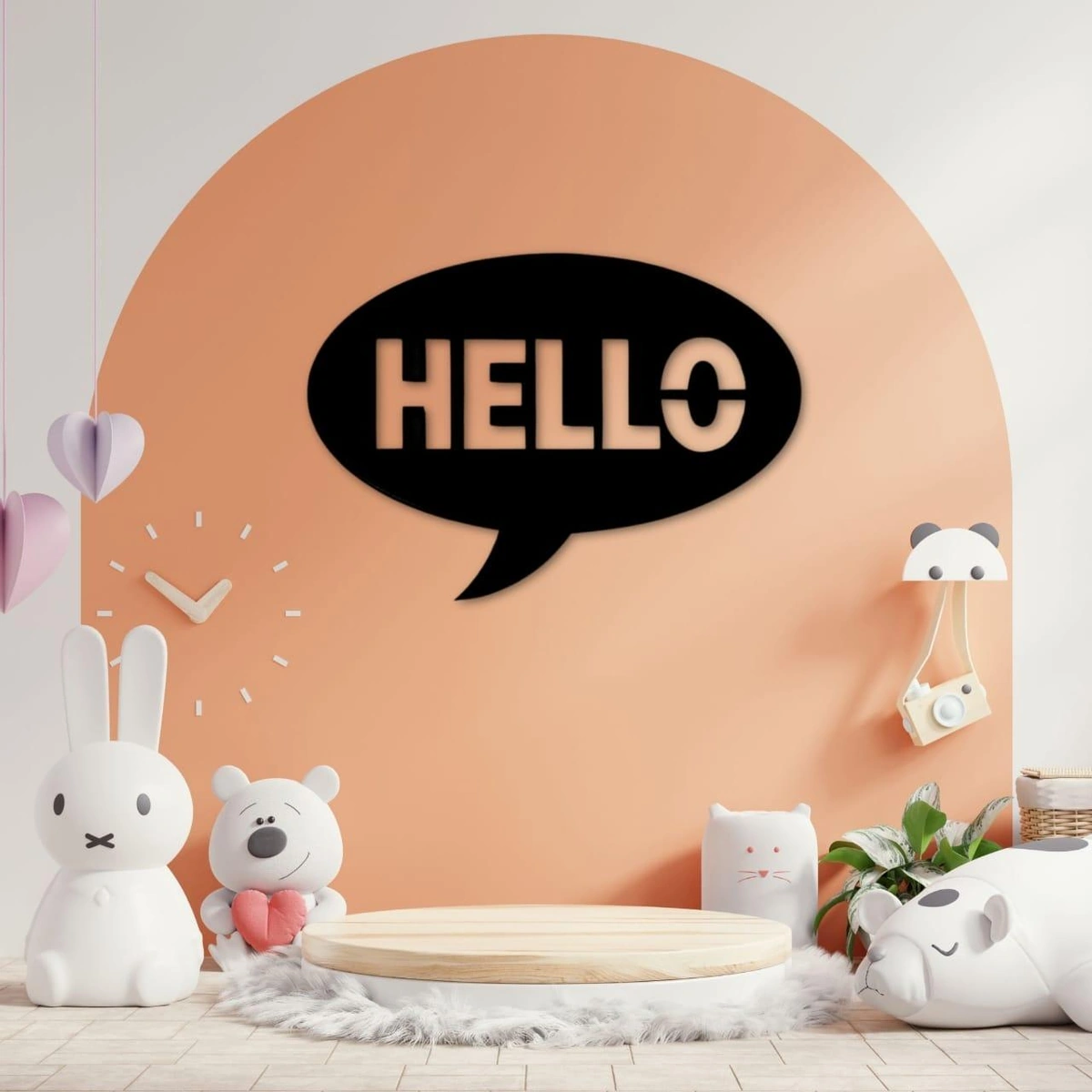 لوحة حائط خشب بكلمة "HELLO" - أسود - 60*85 سم
