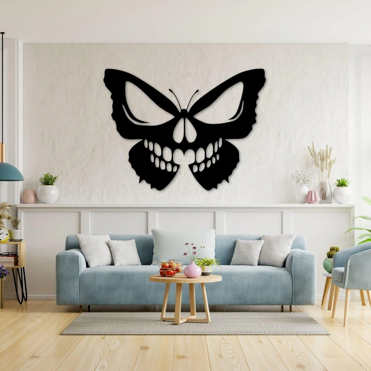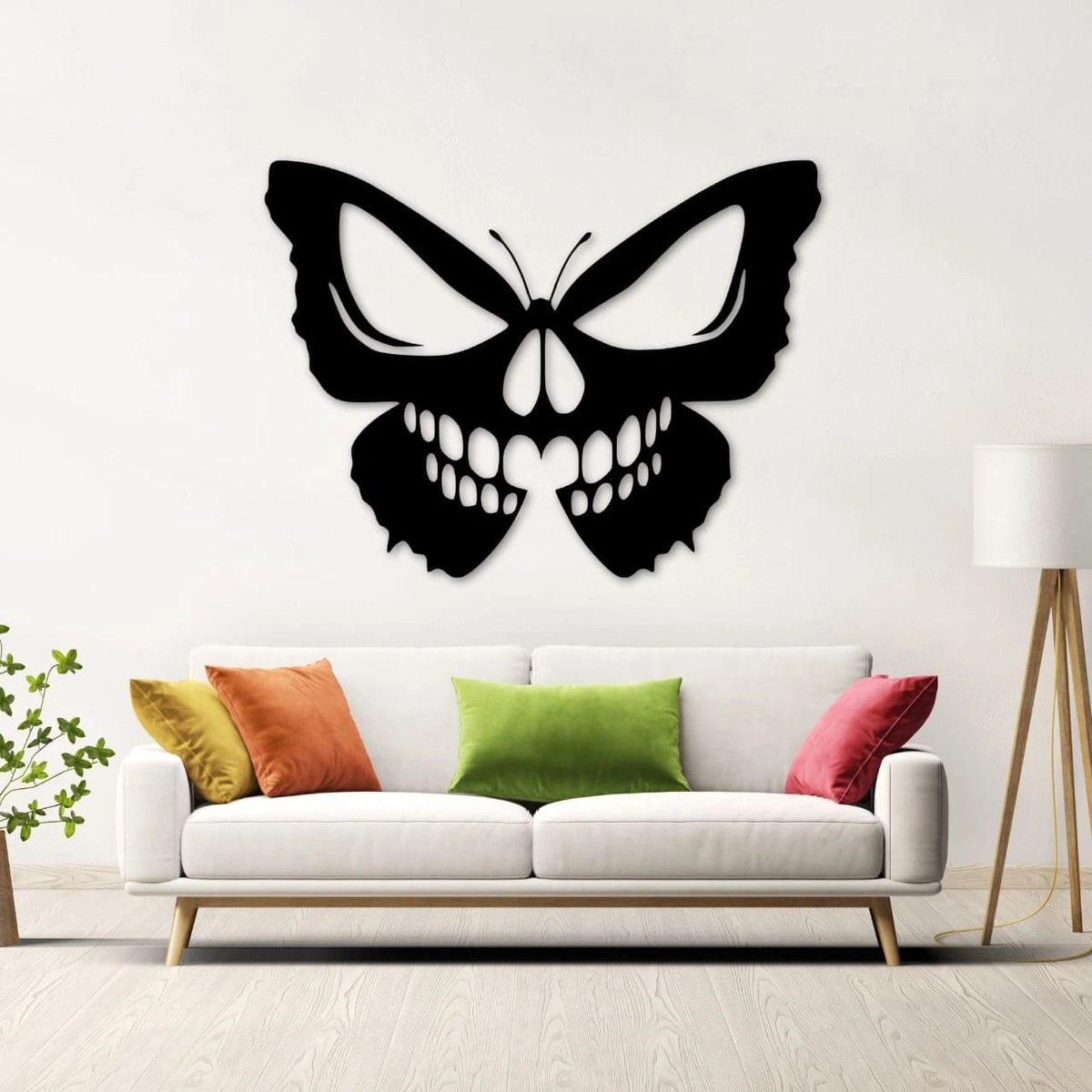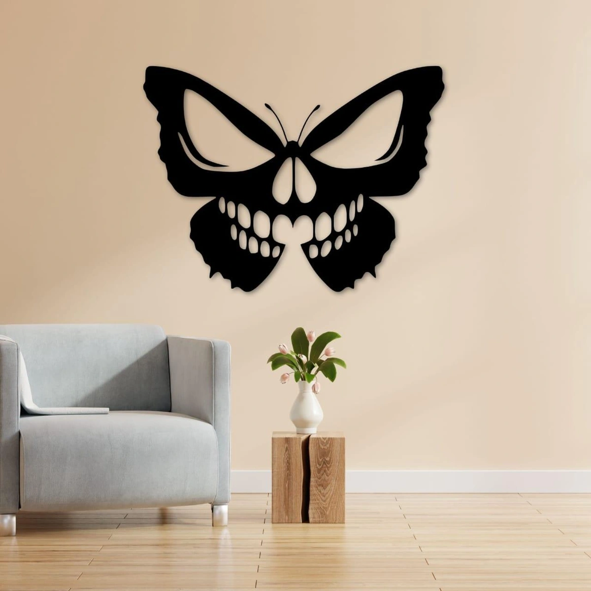 ATM ديكور حائط خشبي بتصميم فراشة وجماجم غوطية يجمع بين الأصالة والحداثة. مصنوع من خامة MDF عالية الجودة بتقنية الليزر ثلاثي الأبعاد ليضيف لمسة فنية وعصرية لمنزلك.