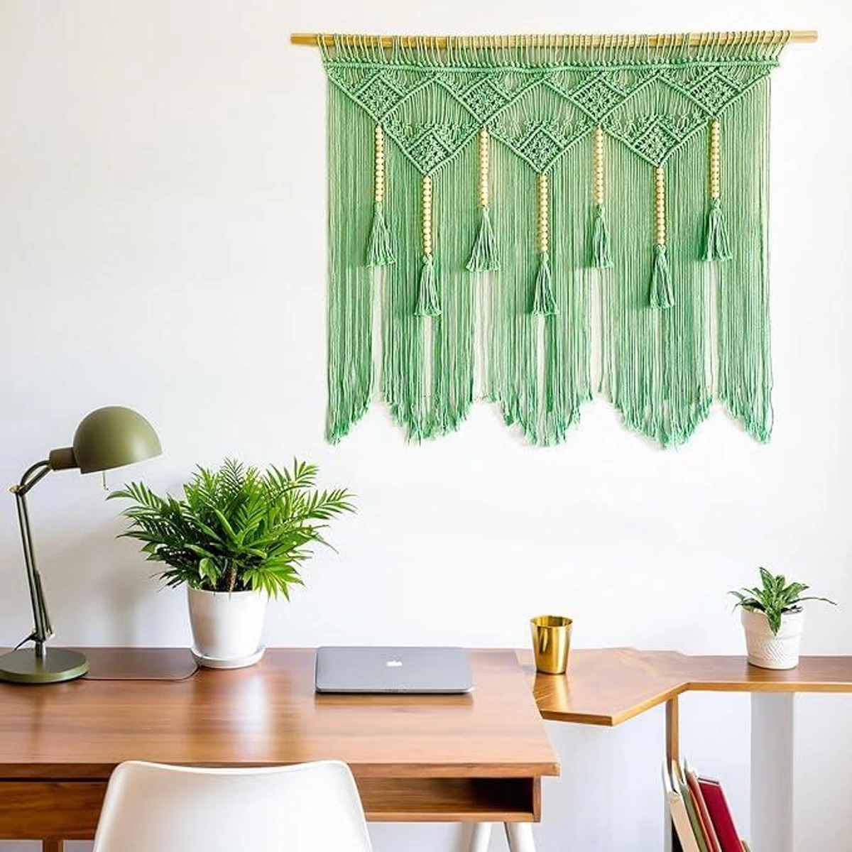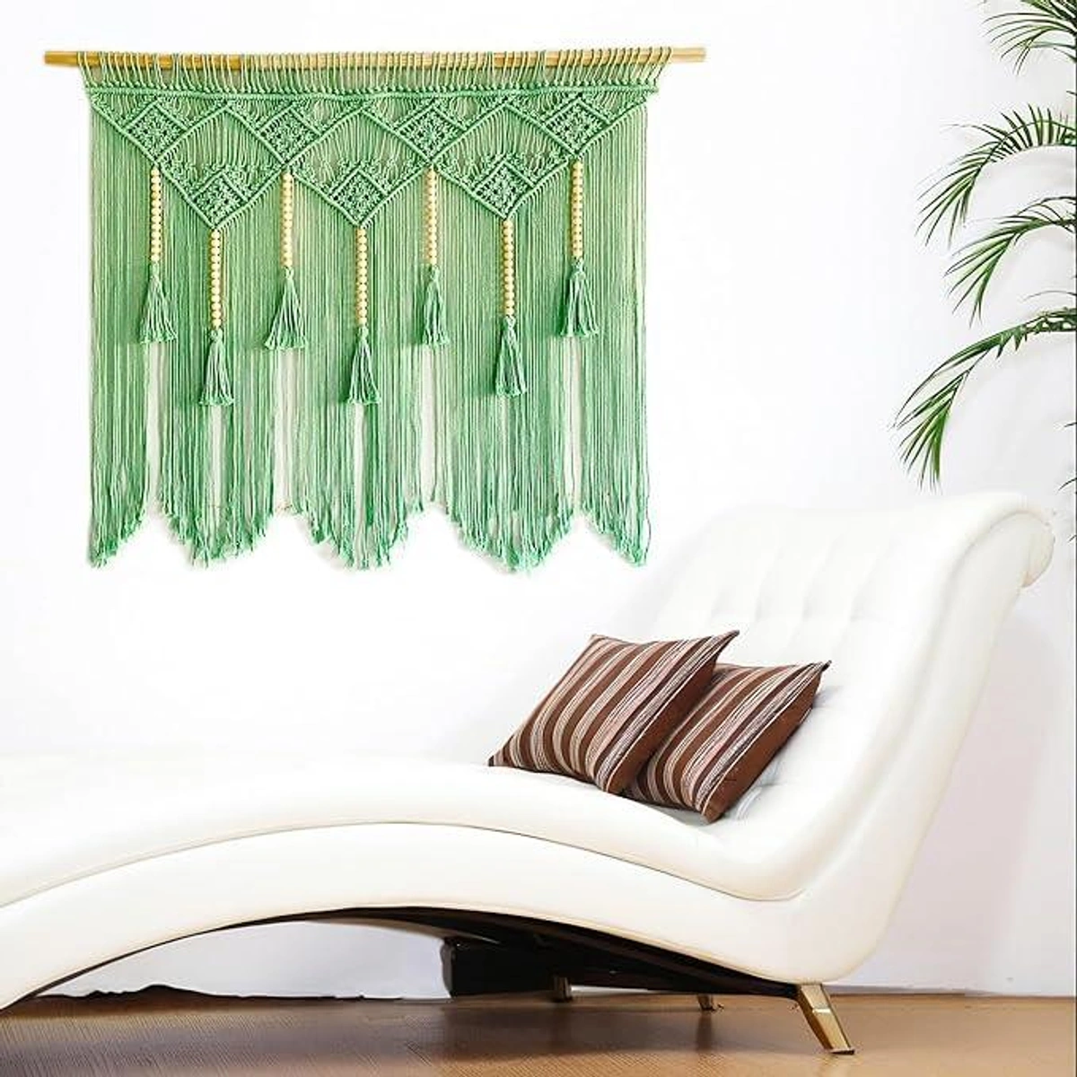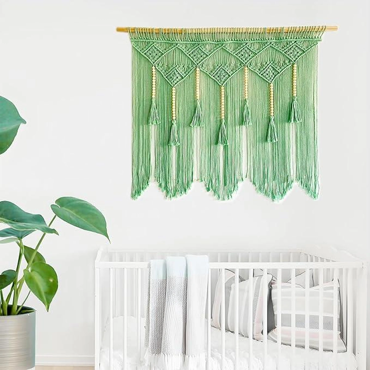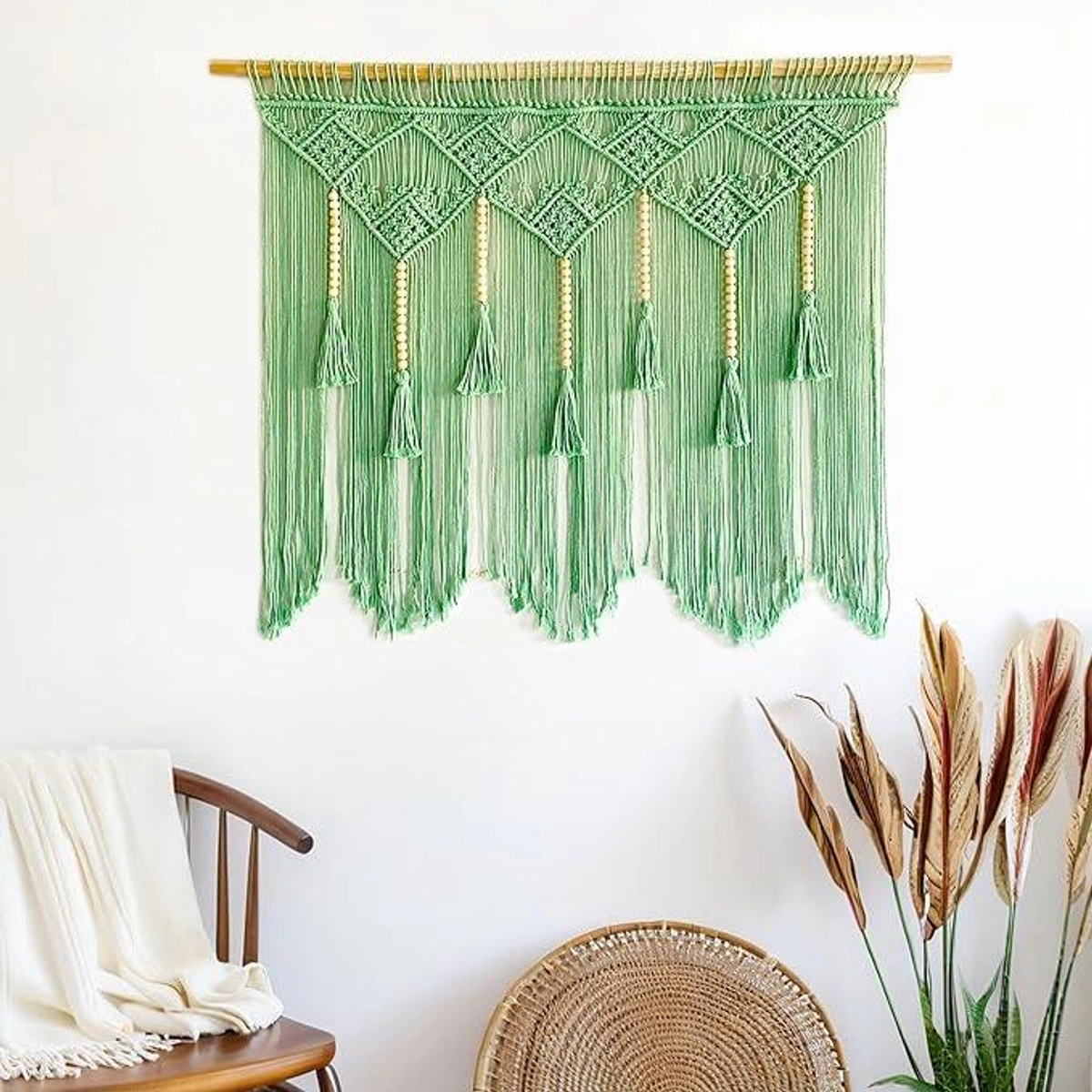 أضف لمسة فنية بوهيمية لمنزلك مع ستارة مكرمية ATM القطنية الخضراء. تصميم يدوي فريد يزين جدرانك ويحول غرفتك لملاذ عصري ساحر.
