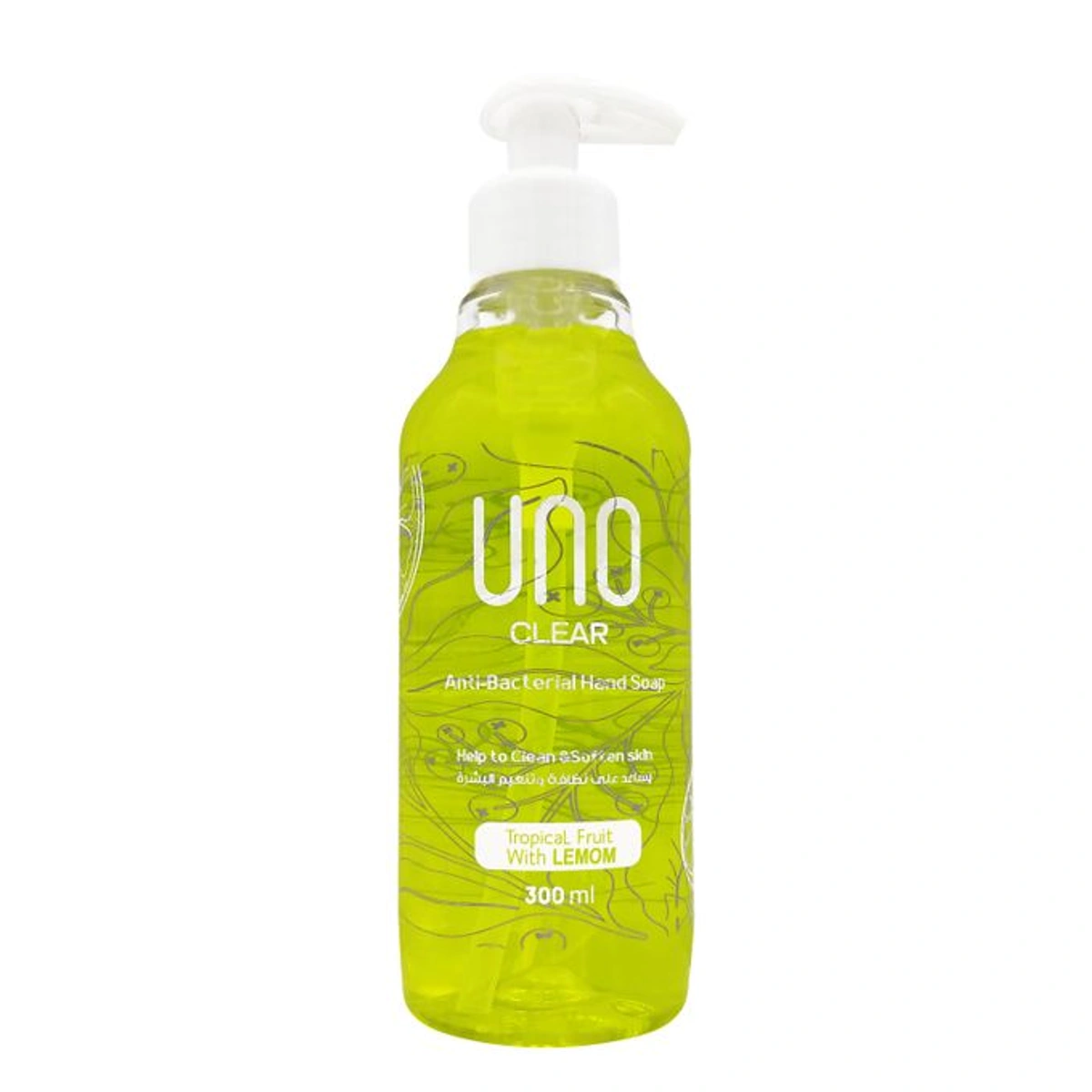 استمتع بنظافة عميقة وحماية فائقة مع صابون اليدين المضاد للبكتيريا UNO Clear برائحة الفواكه الاستوائية والليمون. يزيل البكتيريا بفعالية ويحافظ على ترطيب ونعومة بشرتك، ليمنحك إحساساً بالانتعاش والنظافة طوال اليوم.
