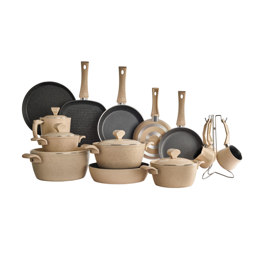 مميزات و مواصفات نوفال طقم حلل جرانيت فيجن روكس - 25 قطعة - بيج