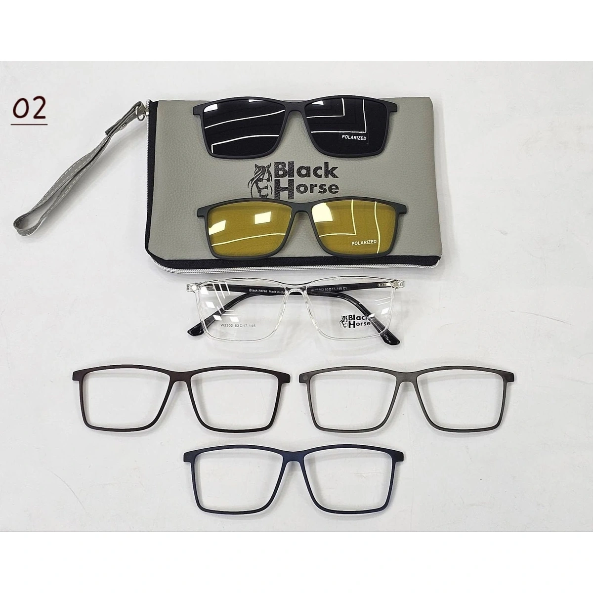 مناسبة للرجال والسيدات,نظام Clip-On لتغيير الواجهة الأمامية فقط،مصنوعة من خامة TR خفيفة، مرنة ومتينة,الواجهة السوداء بعدسات Polarized تقلل الانعكاس,تصميم عصري متعدد الستايلات تأتي مع الجراب الأصلي للحماية الكاملة,مكونات البوكس(نظارة بنظام كليب أون,عدة واجهات أمامية قابلة للتغيير,جراب حماية)