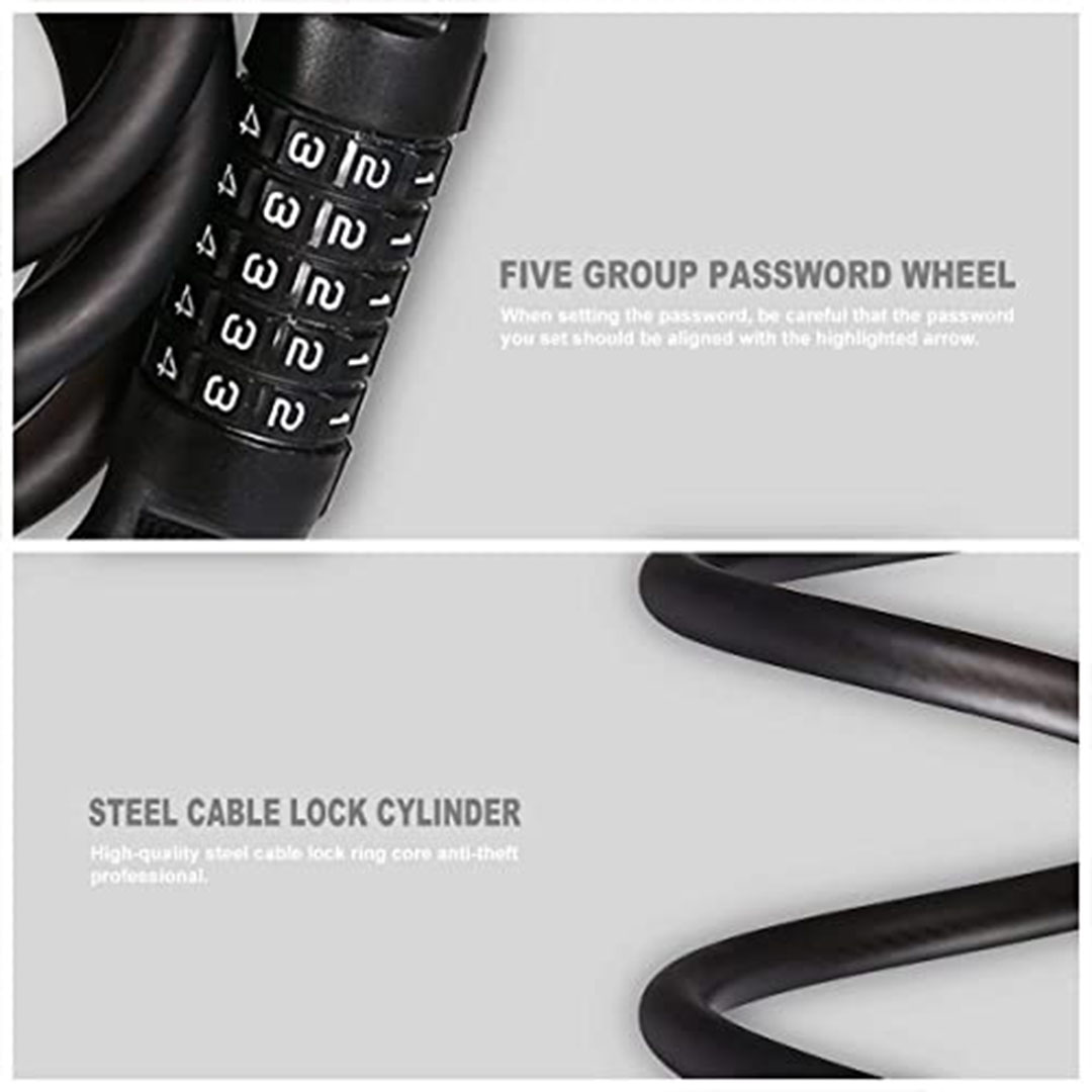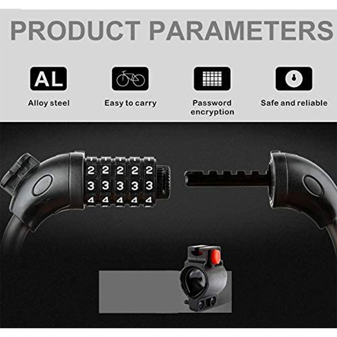 مميزات ومواصفات قفل دراجة برقم قابل لإعادة الضبط - 5 أرقام - 180 سم
