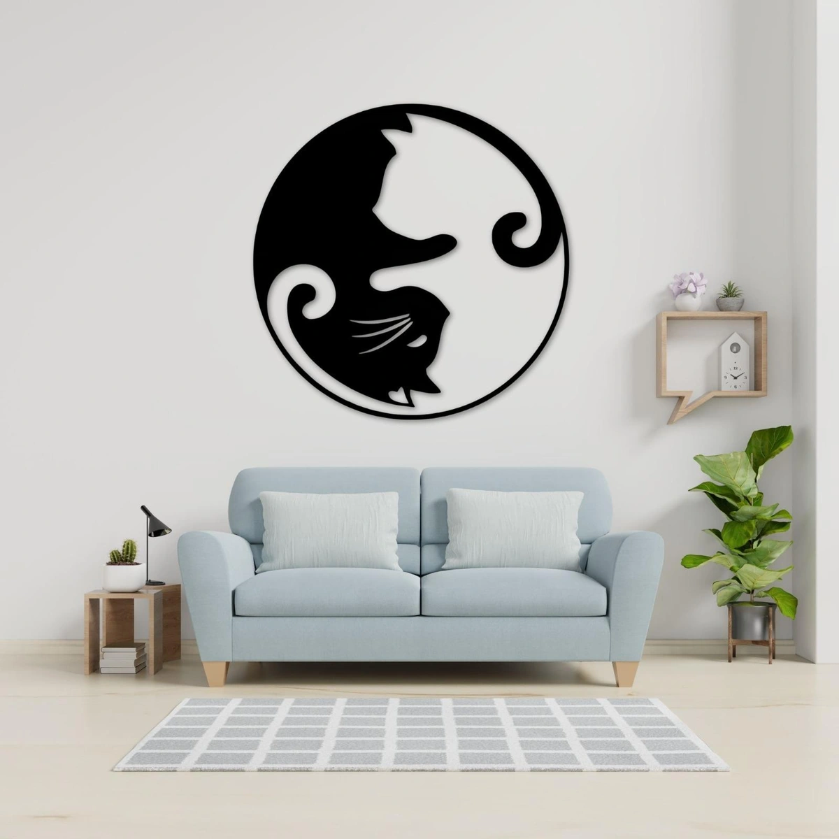 - التصميم: قطط يين يانغ يجسد التوازن بين الظلام والنور، مقطوعة بالليزر بتفاصيل دقيقة