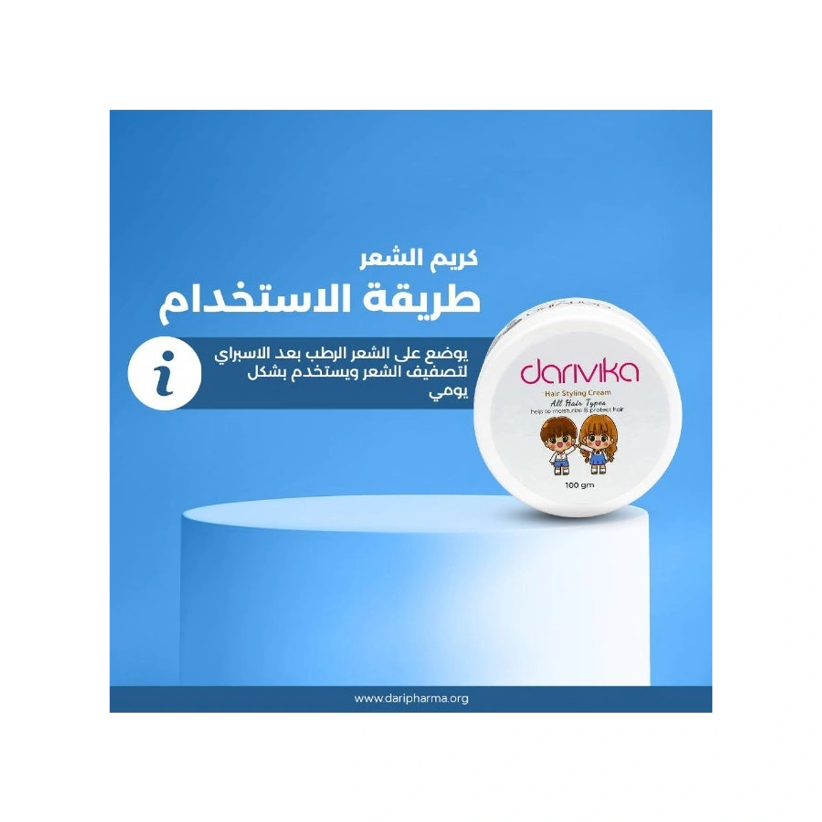 كريم تصفيف الشعر داريفيكا 100 جرام يمنح شعرك ترطيباً عميقاً وتغذية فائقة بتركيبته الطبيعية. استمتعي بشعر لامع وقوي ومحمي من التلف، ومناسب لجميع أنواع الشعر والبشرة.