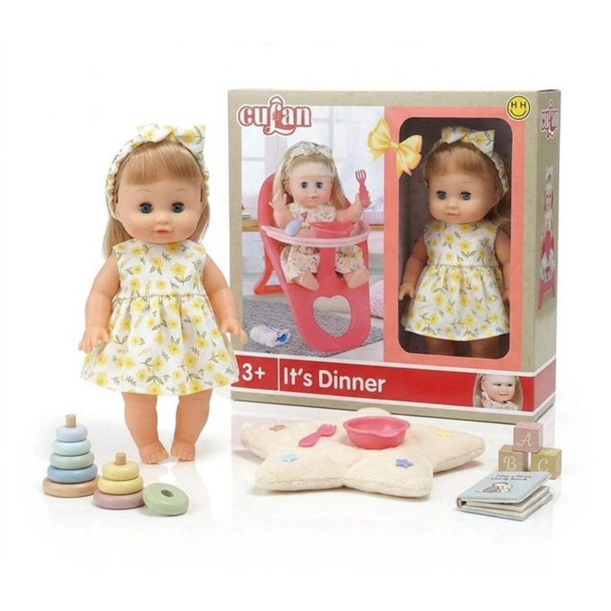 - وقت العشاء الممتع: تسمح للأطفال بالاستمتاع باللعب التخيلي أثناء "وقت الطعام" مع دميتهم.