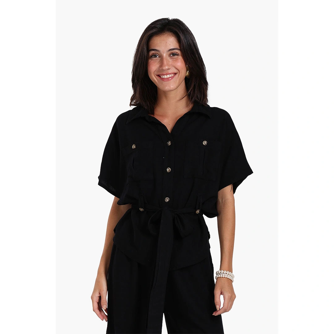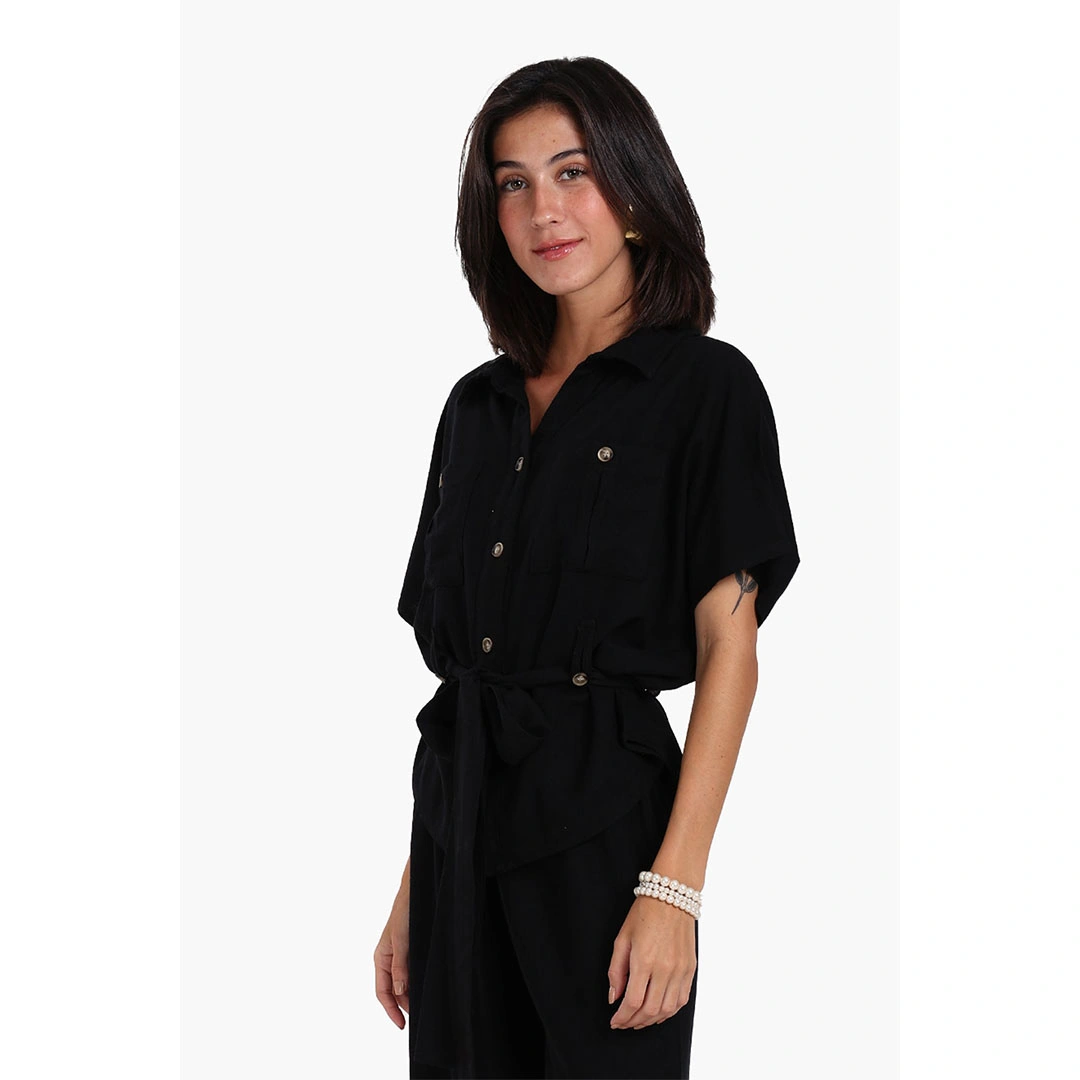 امتزج مع الأناقة المريحة مع بلوزة الاسترخاء المربوطة بالحزام، قطعة متعددة الاستخدامات مصممة لتوفير الراحة والأناقة بدون جهد. تتميز هذه البلوزة بياقة كلاسيكية وأزرار أمامية تتيح لك تعديل أسلوبك حسب الرغبة. تأتي بأكمام قصيرة على طراز دولمان، مما يمنحك حرية الحركة وملاءمة مريحة. تحتوي على جيبين وظيفيين مع طيّات على الصدر، تضيف لمسة من التفاصيل المستوحاة من الطابع العملي. السمة المميزة هي الحزام القابل للتعقيم عند الخصر، مما يتيح لك تحديد البلوزة لخلق خصر محدد أو تركها فضفاضة للحصول على مظهر متدفق ومريح. مصنوعة من قماش ناعم وقابل للتنفس بلون موحد، هذه البلوزة مثالية للاسترخاء الراقي أو الخروج غير الرسمي الأنيق. يمكنك تنسيقها مع سروال مريح متناسق أو شورتات عادية لمظهر منزلي مريح، أو إدخالها داخل جينز عالي الخصر أو سراويل كتان لمظهر يومي مصقول ولكنه مريح. ارتديها مفتوحة فوق تي شيرت أساسي كقطعة خفيفة لطبقات صيفية، واستخدمي الحزام القابل للتعديل لخلق خصر محدد أو إزالته لمظهر فضفاض ومريح. اجمعها مع سراويل كابري مصممة أو شورتات أنيقة وصنادل أنيقة للحصول على إطلالة صيفية ذكية وعصرية تنتقل بسهولة من النهار إلى المساء.