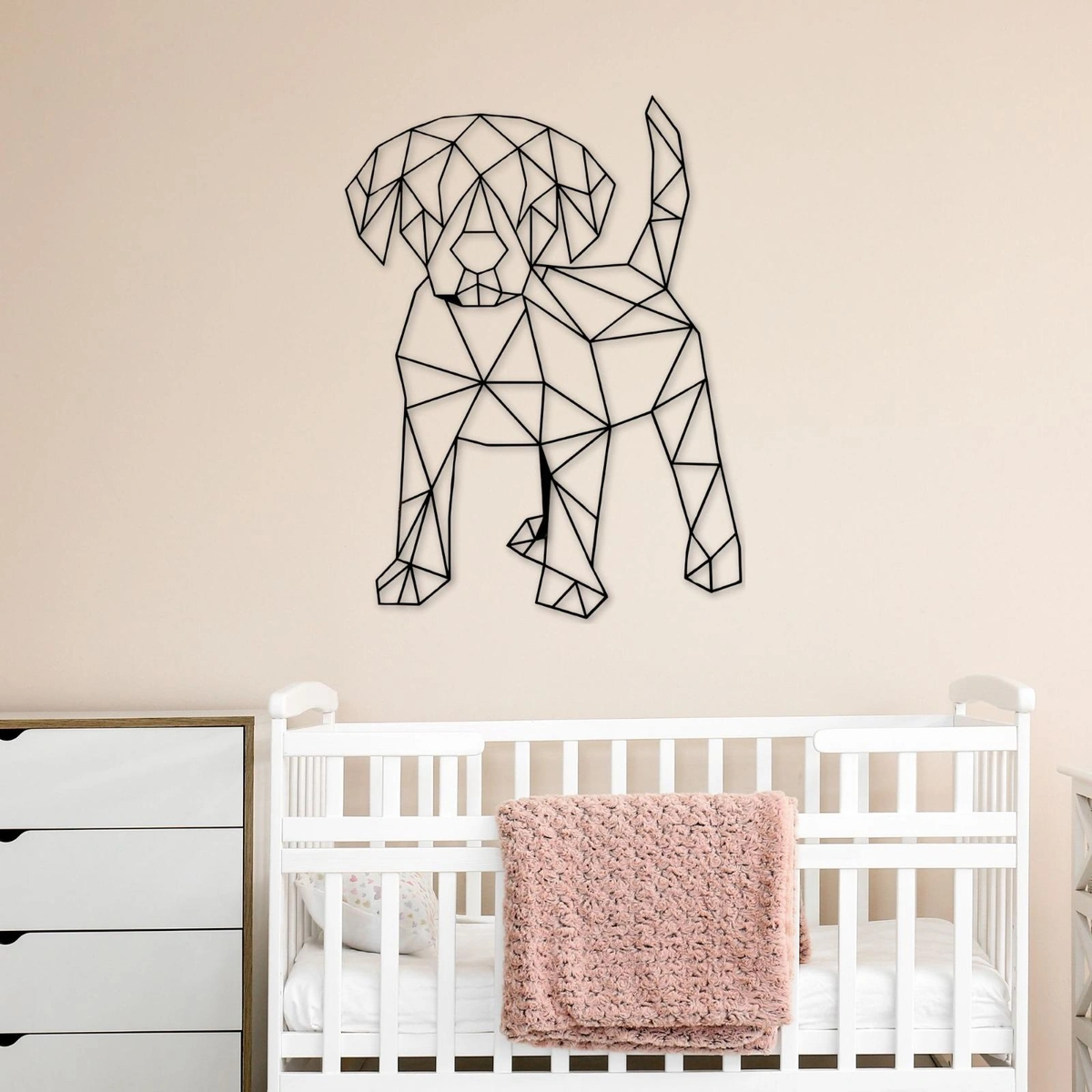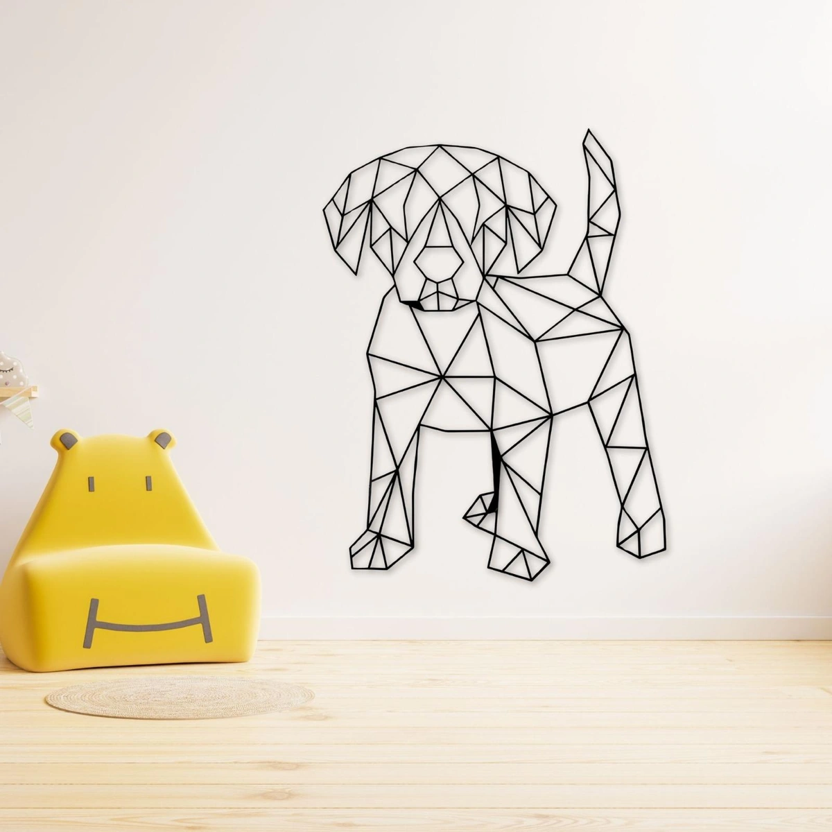 - عمل فني جداري لكلب هندسي: تصميم عصري يجمع بين الأناقة والسحر الجذاب.