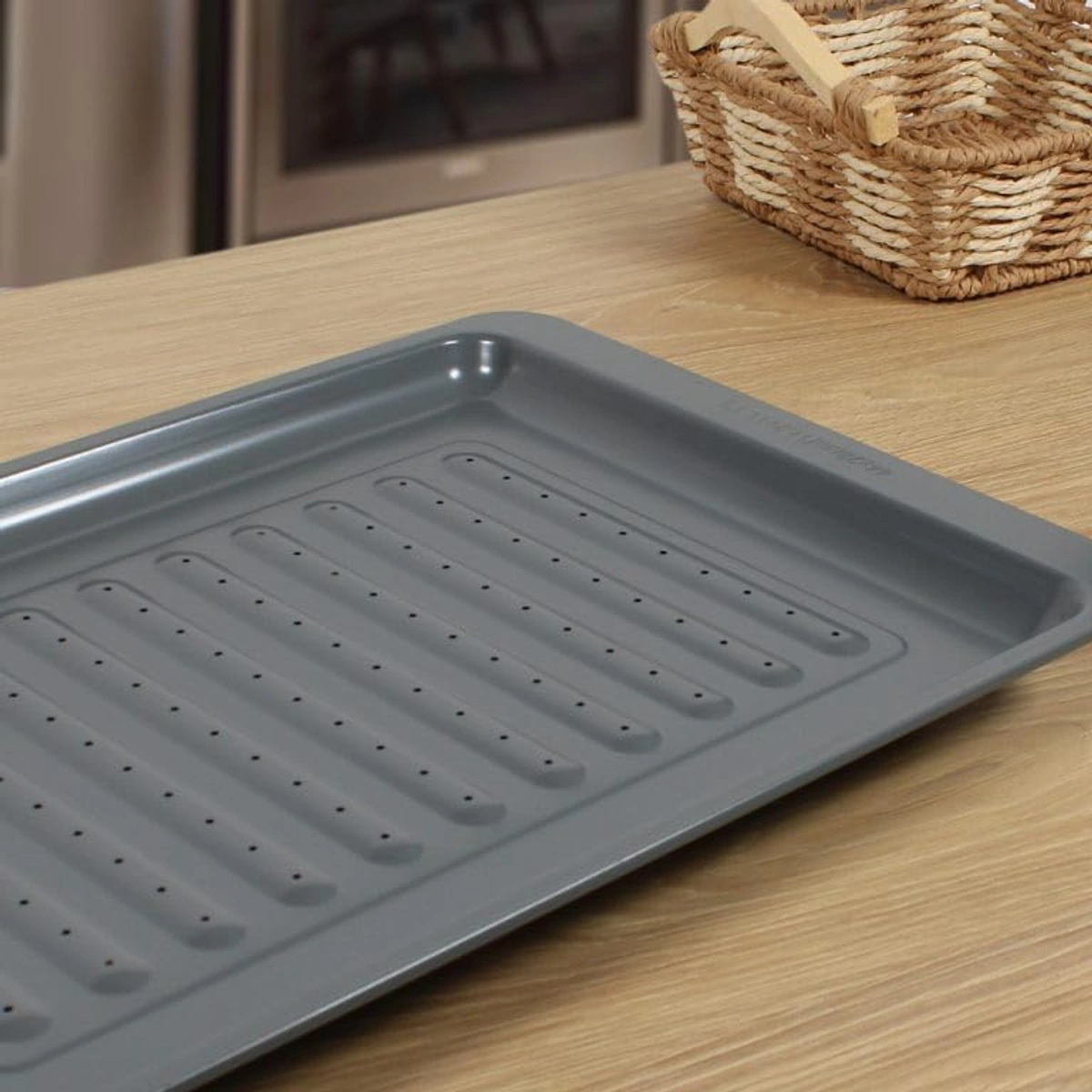 اكتشف صينية الخبر المصنوعة من الصلب الكربوني الفاخر غير اللاصق، والتي تعتبر الخيار المثالي لمحبي الخبز والطهي. تتميز هذه الصينية بتصميمها القوي والمتين الذي يضمن توزيعًا متساويًا للحرارة، مما يؤدي إلى نتائج متميزة في كل مرة. بفضل قاعدة منقوشة بفتحات للهواء، يتم تعزيز تدفق الهواء لتحصل على طعام مقرمش ومطبوخ بالتساوي دون خطر الاحتراق أو الالتصاق. تأتي هذه الصينية بمقاس متعدد الاستخدامات 44 × 29 سم، مما يجعلها مثالية لخبز البسكويت، وتحضير البطاطس المقلية، والدجاج، والخضروات، والمعجنات، وغيرها من الأطباق اللذيذة في أي فرن قياسي. ومع سطح سهل التنظيف وطلاء عالي الجودة مانع للالتصاق، يمكنك إخراج الطعام بسهولة وتنظيف الصينية بسرعة سواء باليد أو في غسالة الأطباق. تصميمها المتين والمقاوم للاعوجاج مع حواف معززة يضمن الثبات وطول العمر، مما يجعل هذه الصينية من الأدوات الأساسية في مطبخك لتمتع بتجربة خبز رائعة وآمنة.