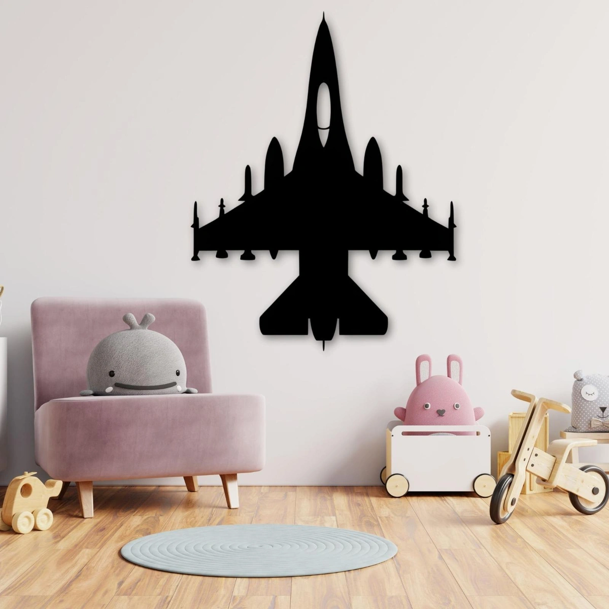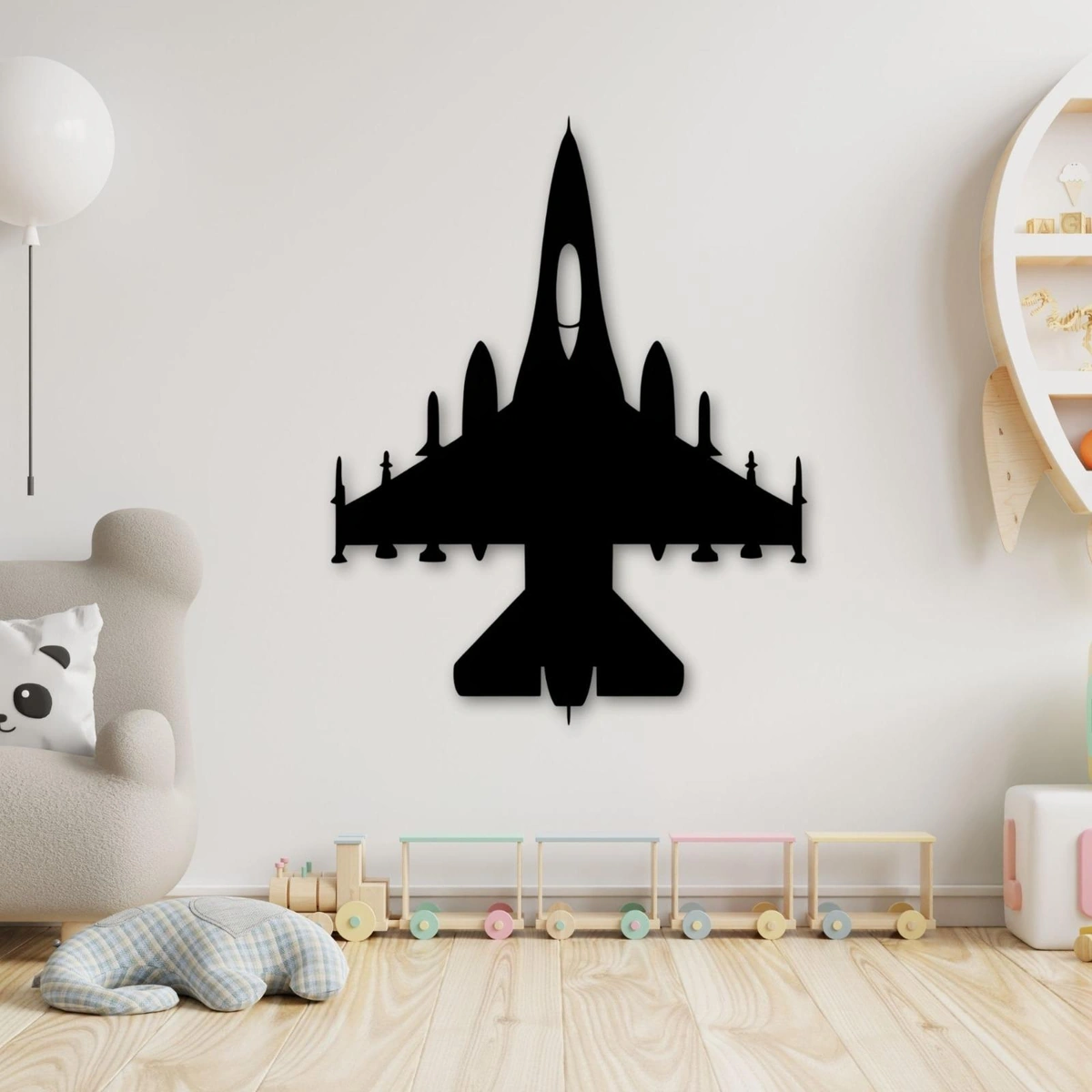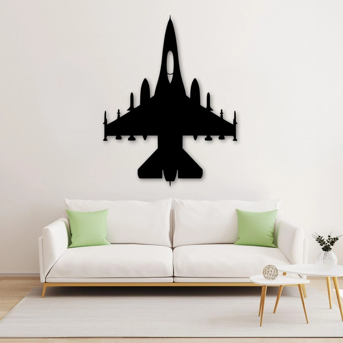أضف لمسة عصرية وجريئة لديكور منزلك أو مكتبك مع لوحة ATM الجدارية المصنوعة من خشب MDF بتصميم طائرة F-16. جودة عالية وتصميم فريد باللون الأسود الأنيق يضفي لمسة من القوة والأناقة.