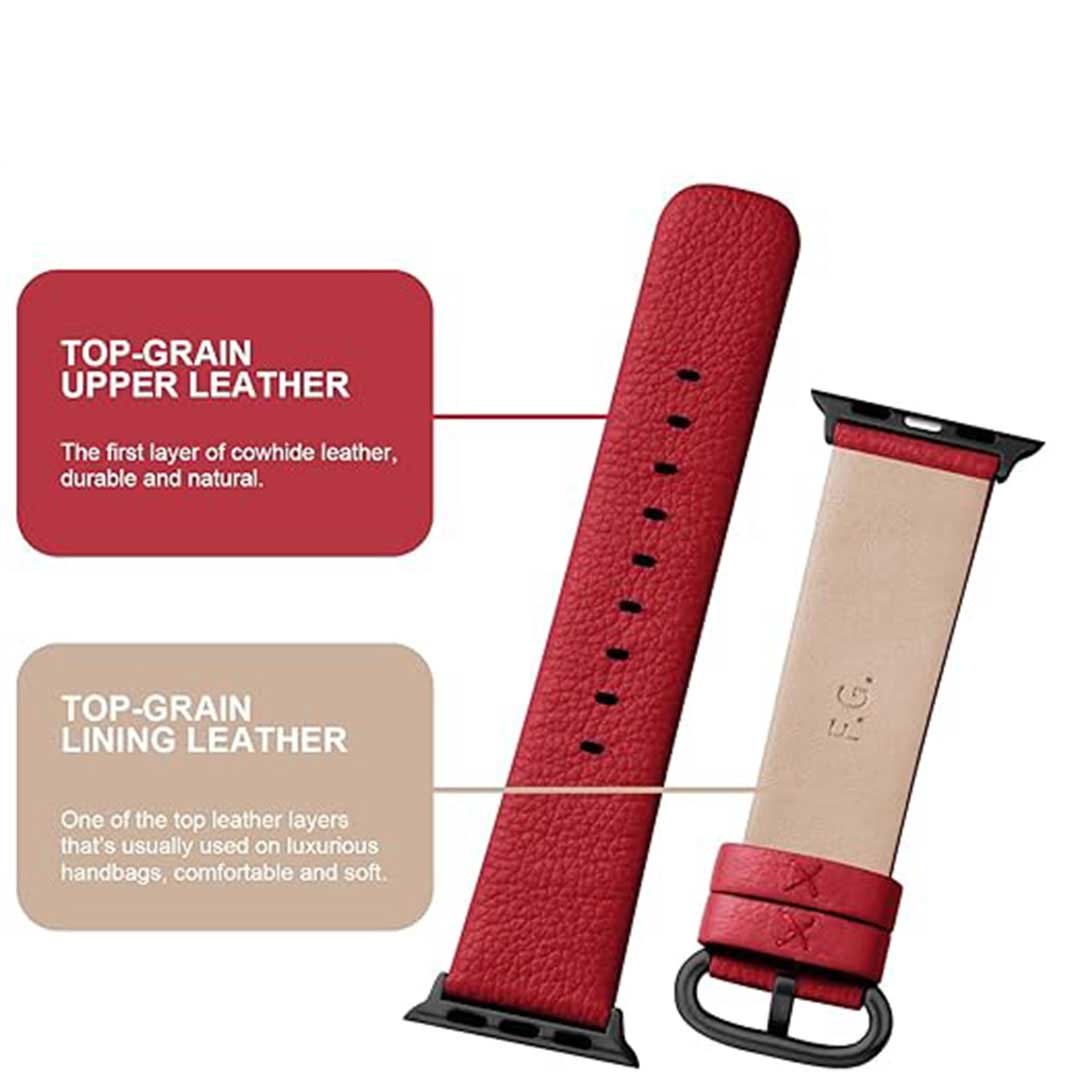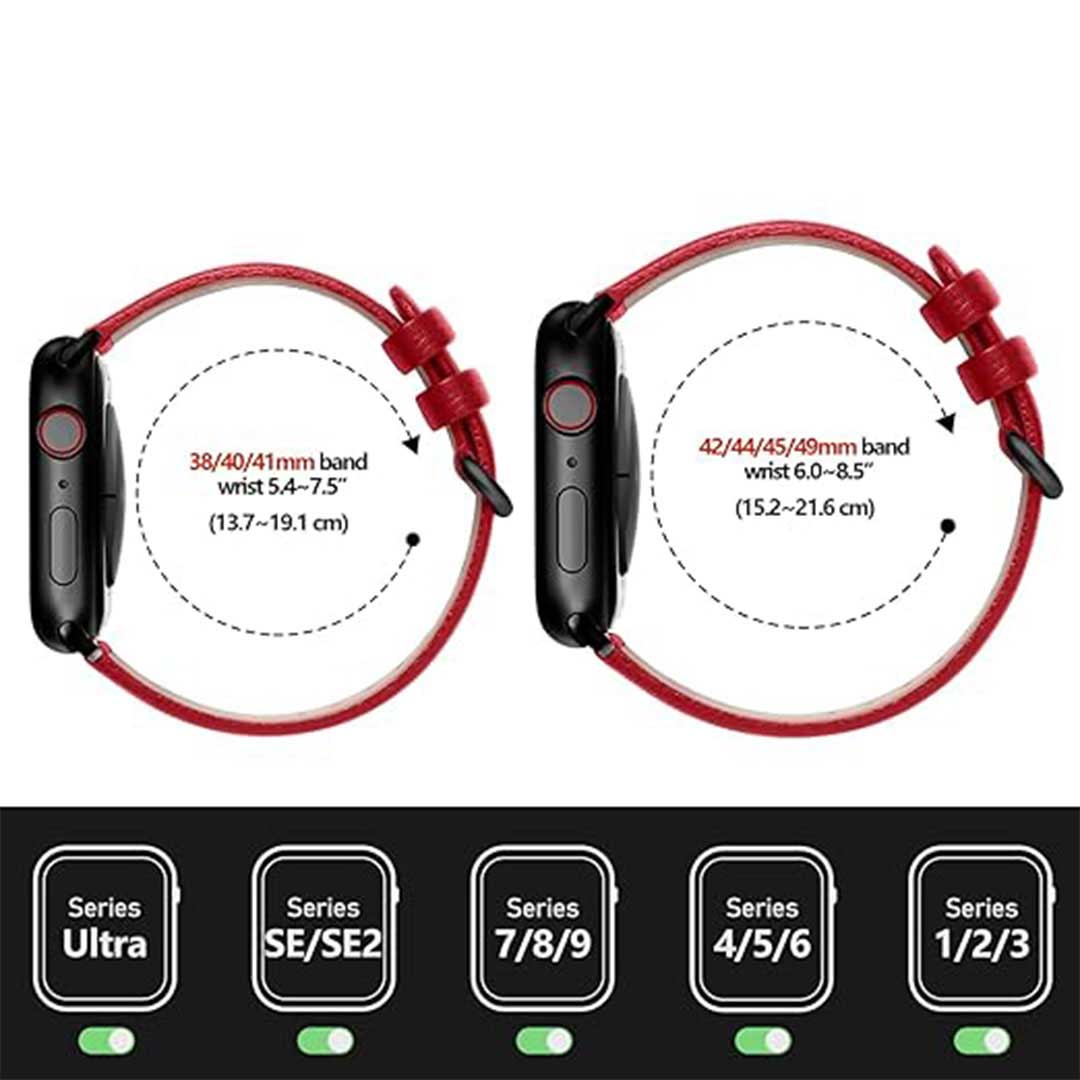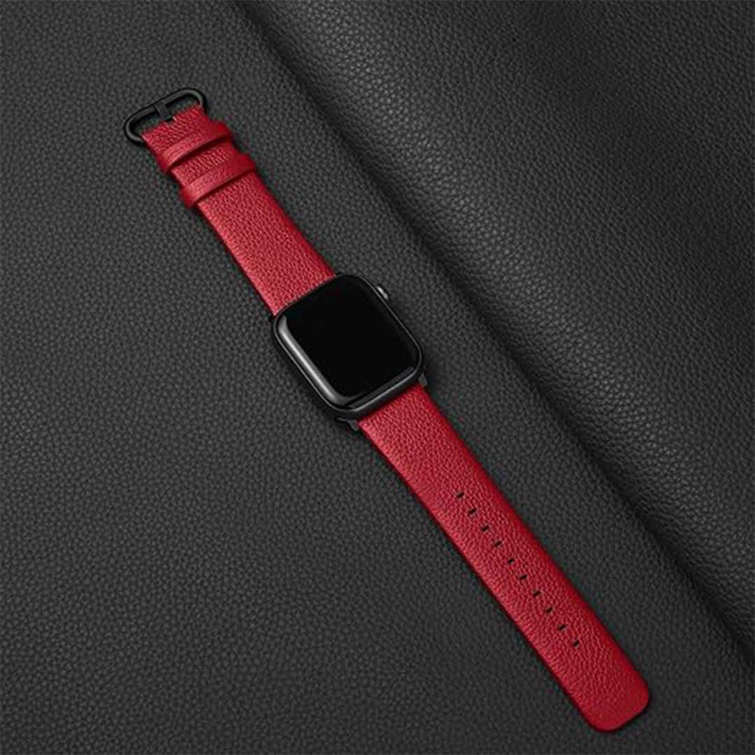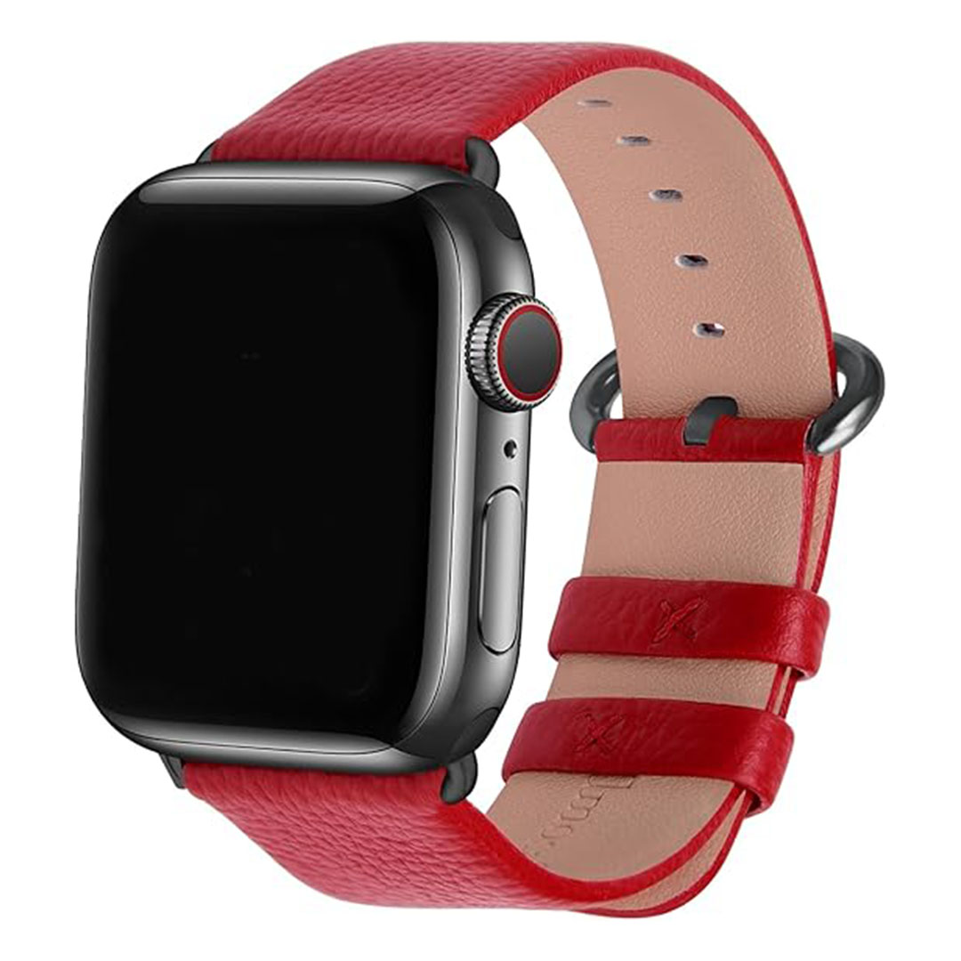 سوار من الجلد الطبيعي لساعات ابل - أحمر