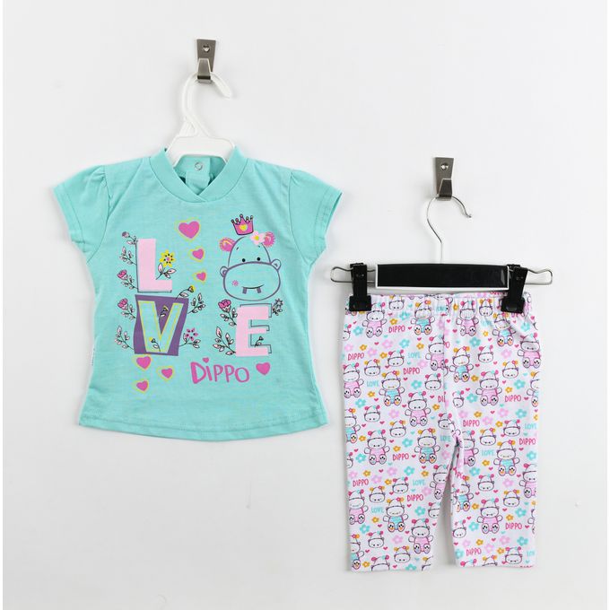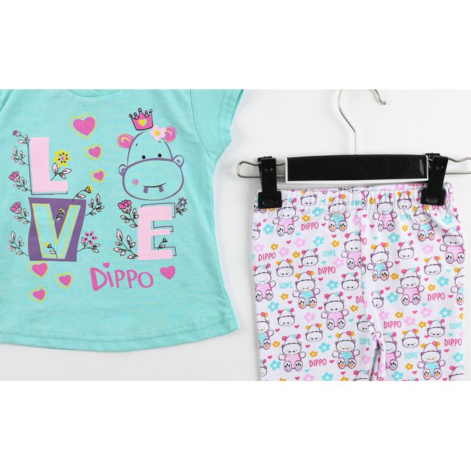 • بيجامة قطن 100% صيفي للبنات - أزرق